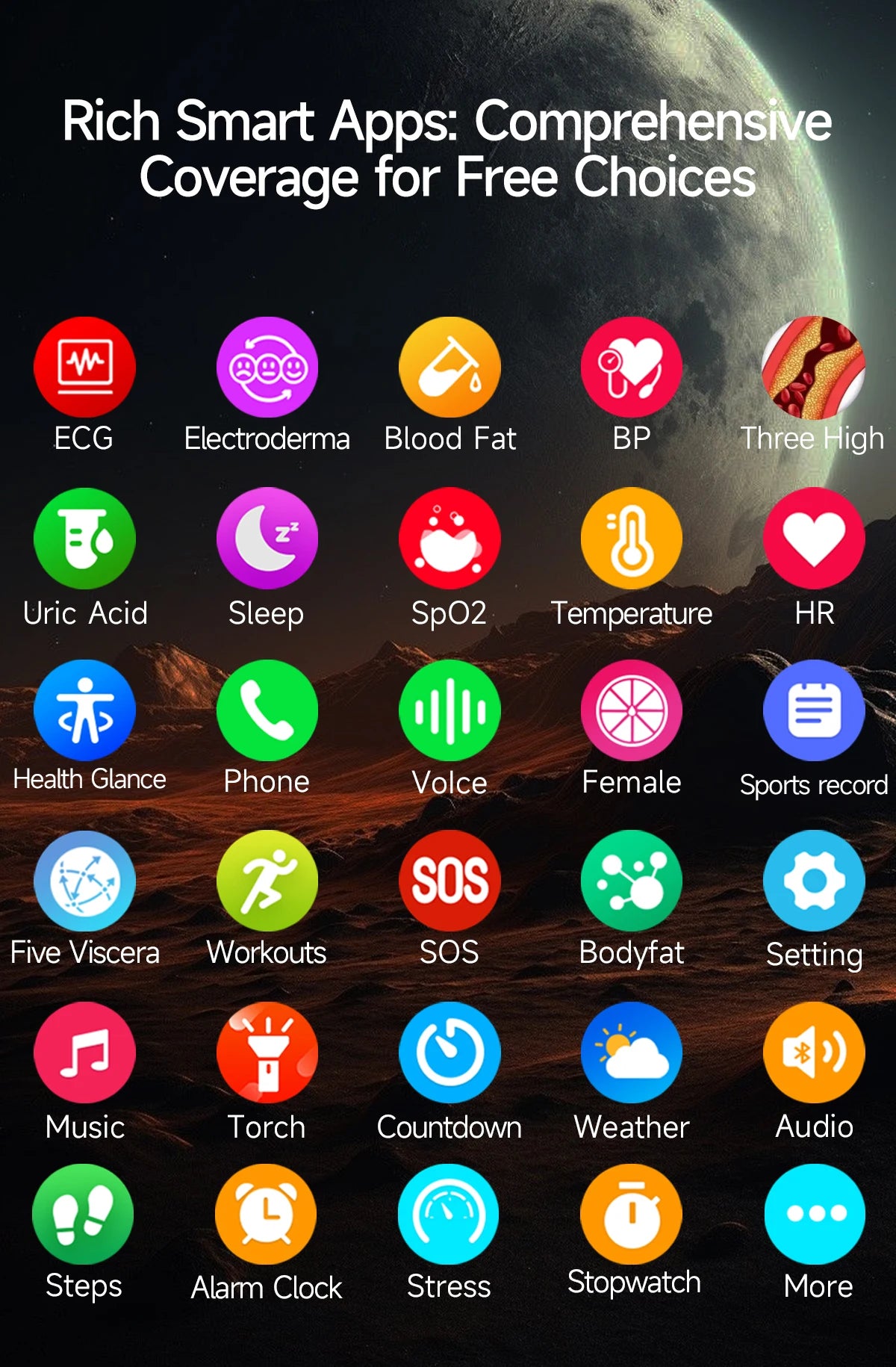 1.43'' HD Sapphire Smart Watch Bluetooth Call Blood Fat Uric Acid Heart Rate Body Analysis Five Organs Health Smartwatch Men Wom