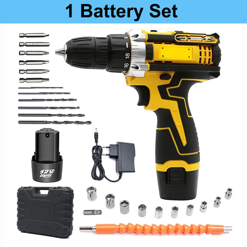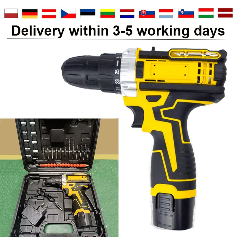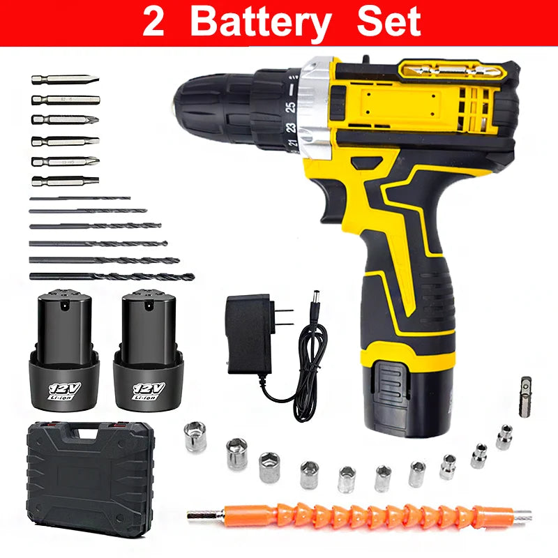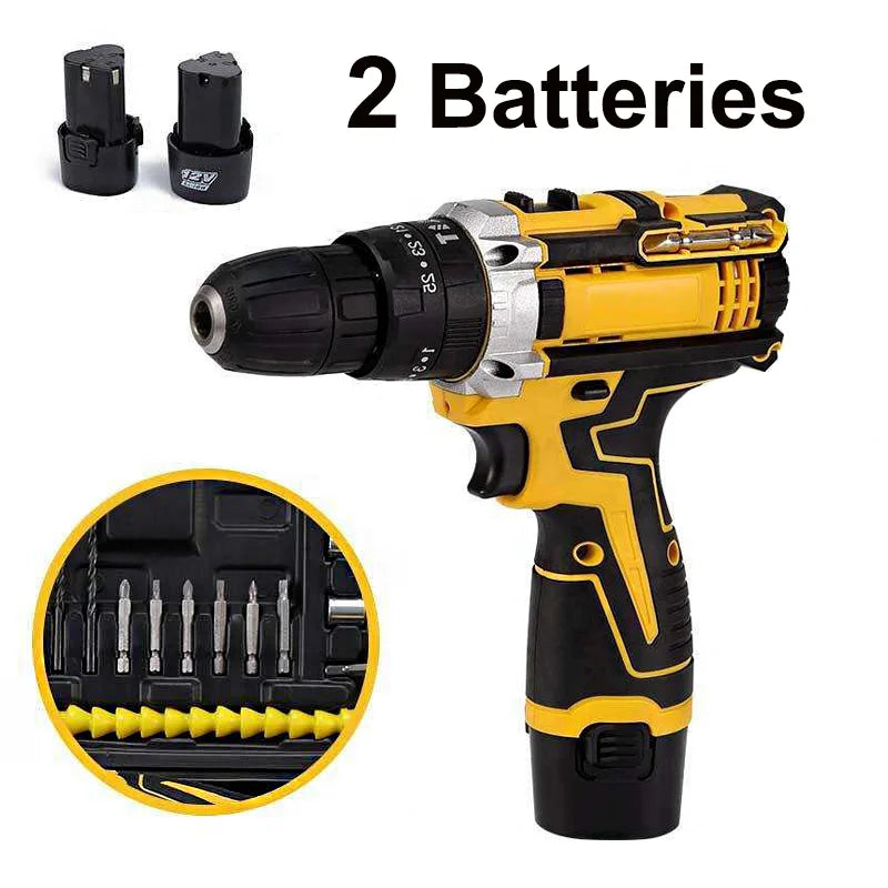 1 oder 2 Batterien Lithium-Bohrmaschine Elektroschrauber Handbohrmaschine Elektrowerkzeug-Set Multifunktionale Zubehörbox