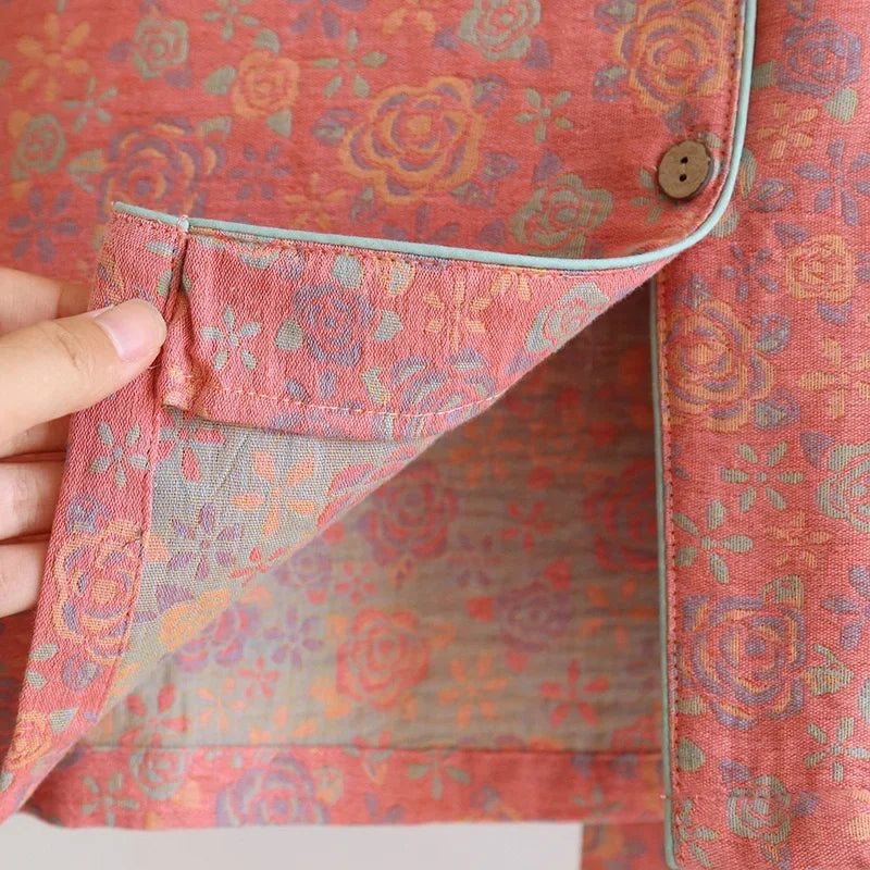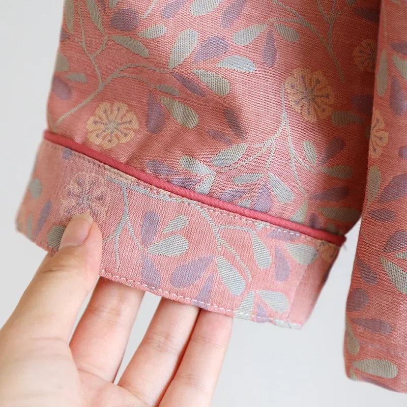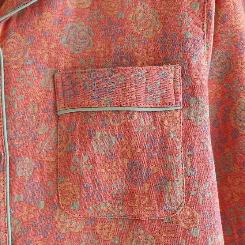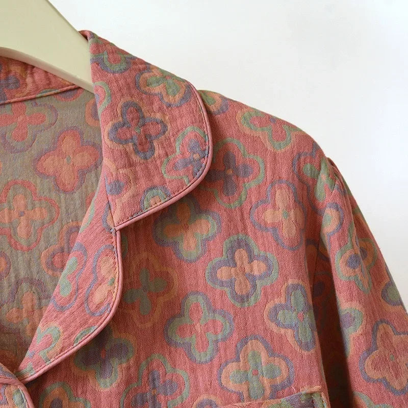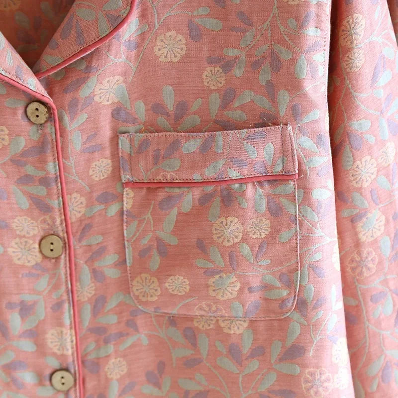 100% Cotton Crepe Homeclothes 2023 Autumn/Winter Women's Pajamas Suit Long-Sleeved Trousers 2-piece Yarn-Dyed Jacquard Pajamas