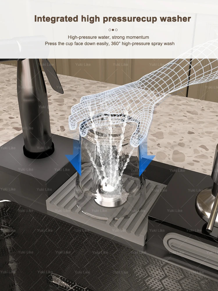 100 x 50 cm Edelstahl-Wasserfall-Küchenspüle, extra große Einzelschlitz-Digitalanzeige, multifunktionale Geschirrspülbecken