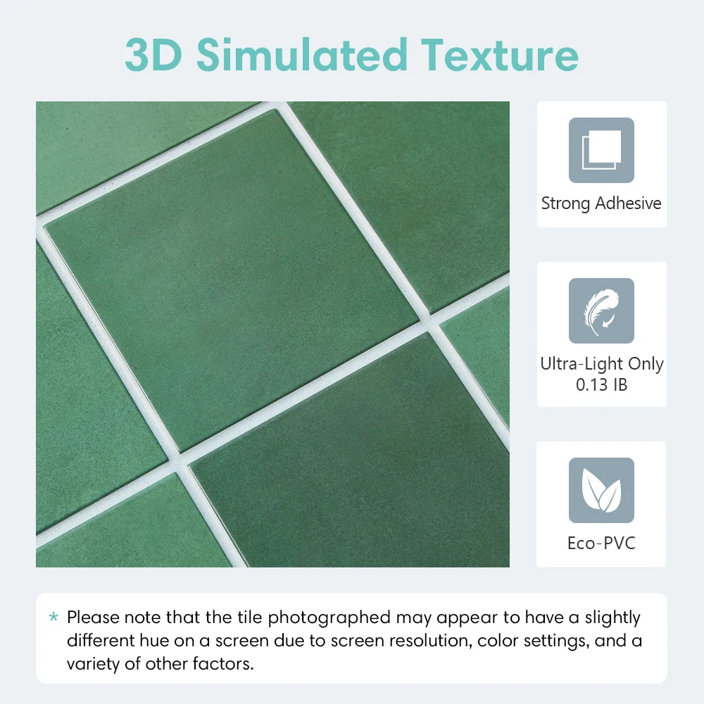 10pcs 3D Decorative Tile Stickers, Self-adhesive 3D Wall Stickers for Kitchen and Bathroom, Water Mold Resistant, 30x30cm