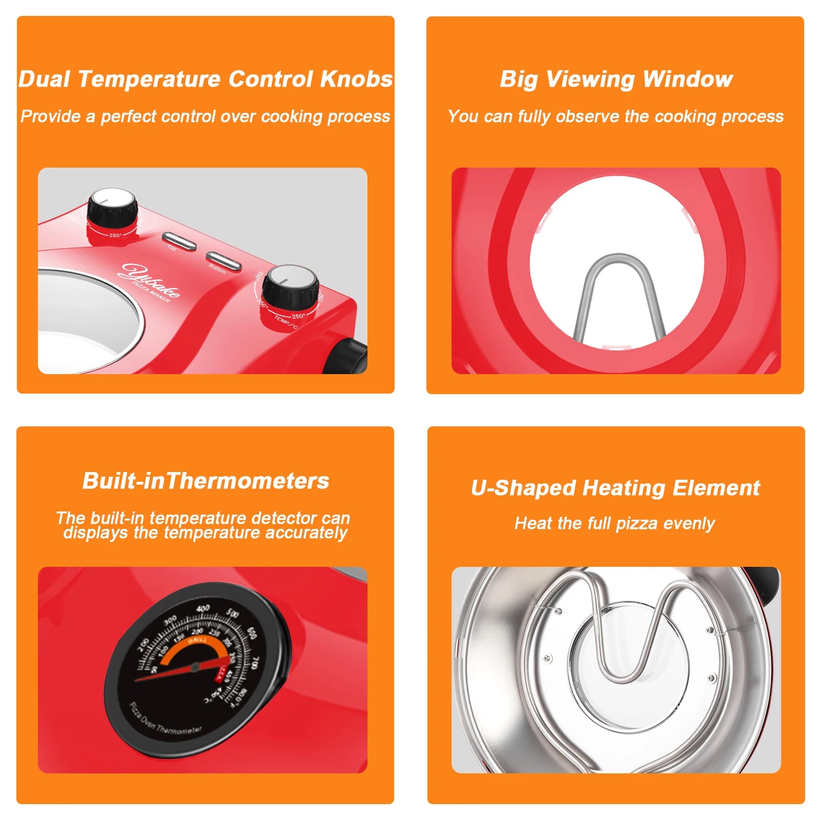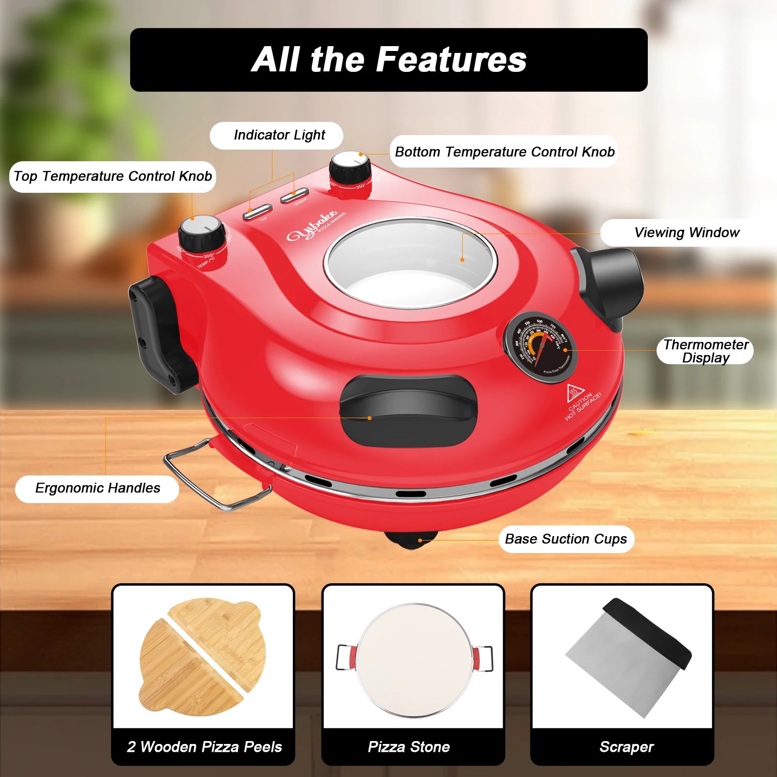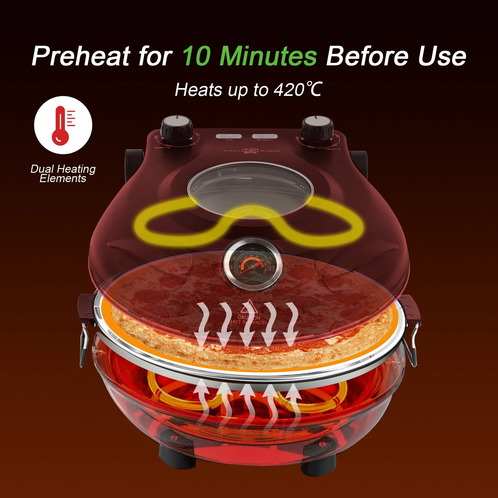 12-Zoll-Elektro-Pizzaofen für den Innenbereich, Arbeitsplattenhersteller mit Keramiksteinen, erhitzt bis zu 420 ℃ für köstliche, gebackene Pizzeria-Steine