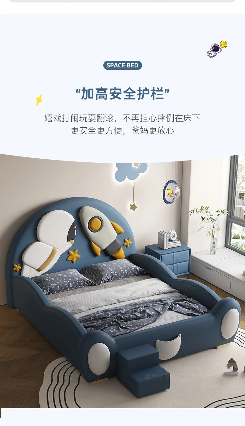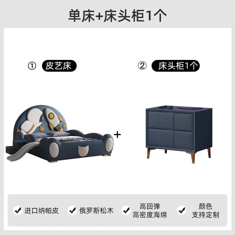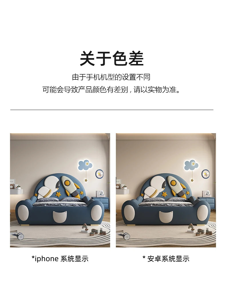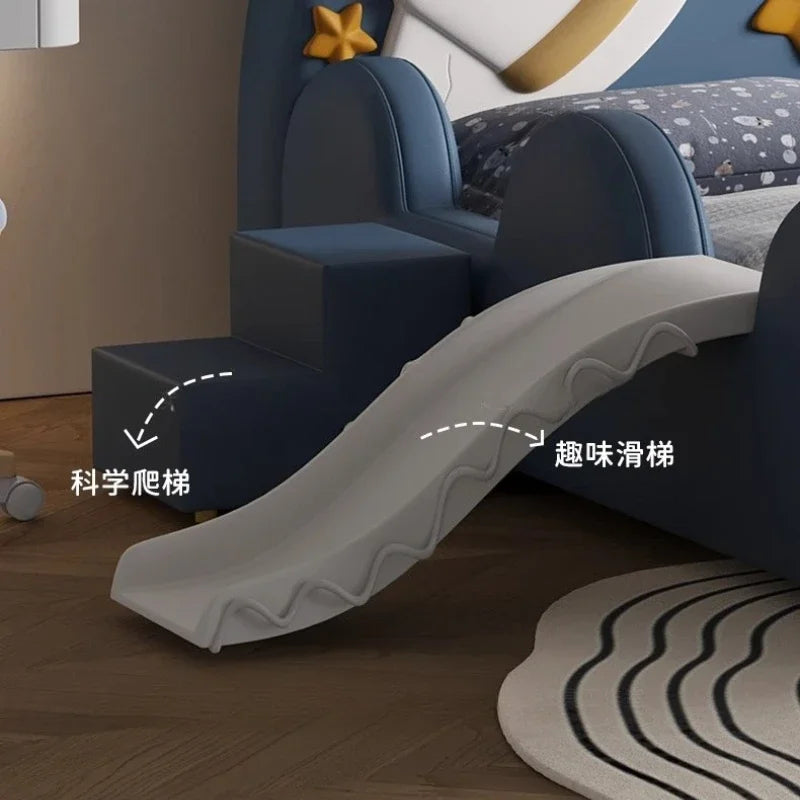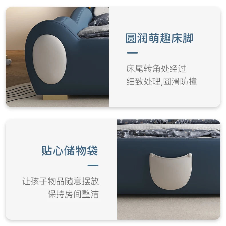 120 x 200 cm, blaues King-Size-Einzelbett, Doppelrahmen, luxuriös, 150 x 200 Heimpadder, Kinderbett, Kopfteil, zum Spielen auf einer Rutsche, Schlafzimmermöbel