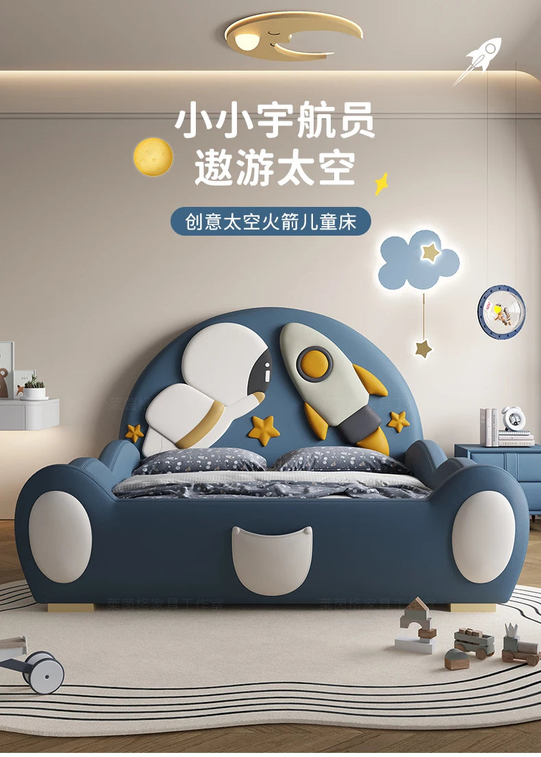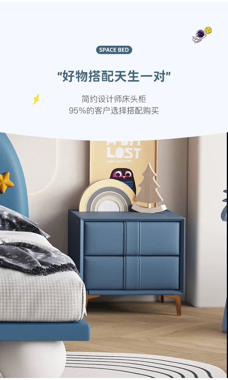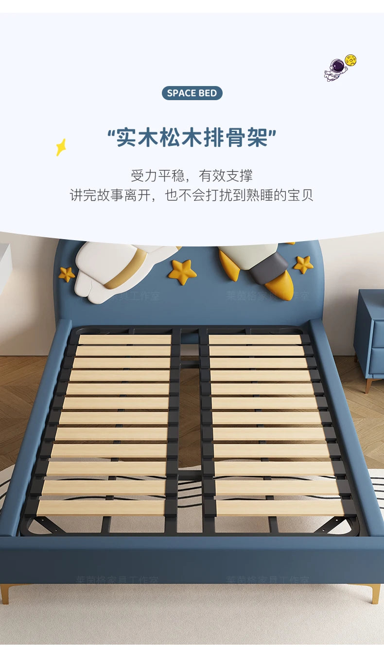 120 x 200 cm, blaues King-Size-Einzelbett, Doppelrahmen, luxuriös, 150 x 200 Heimpadder, Kinderbett, Kopfteil, zum Spielen auf einer Rutsche, Schlafzimmermöbel