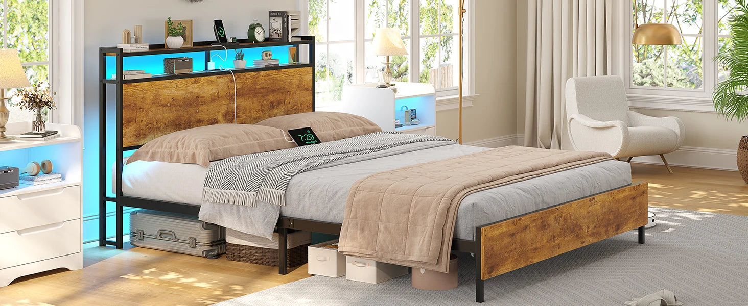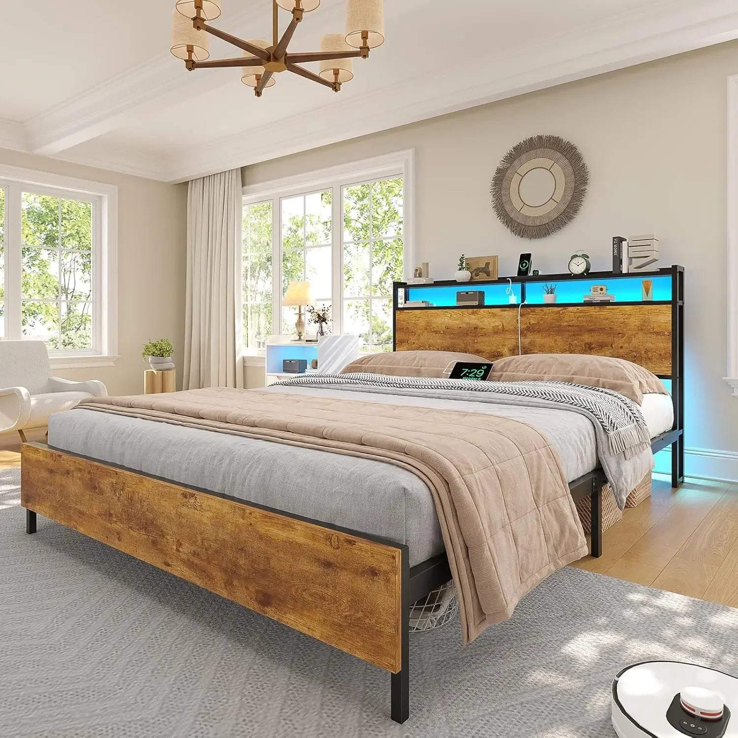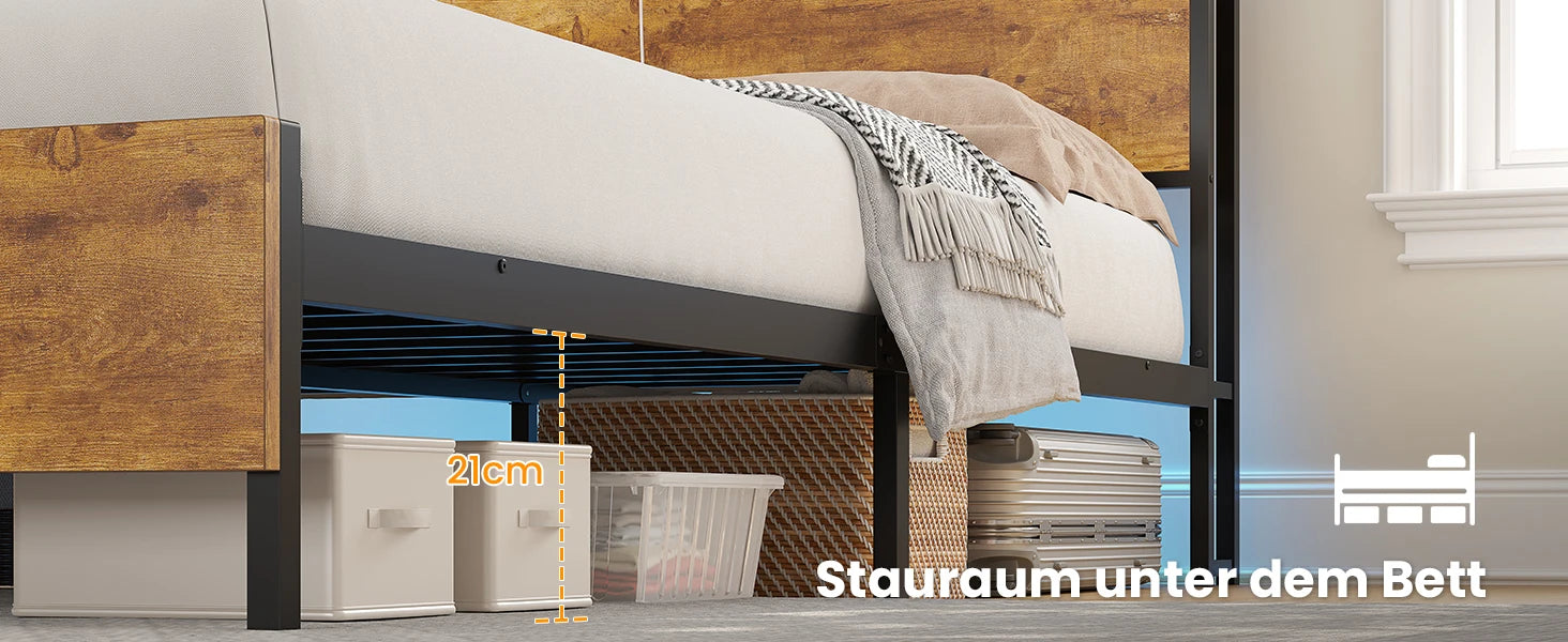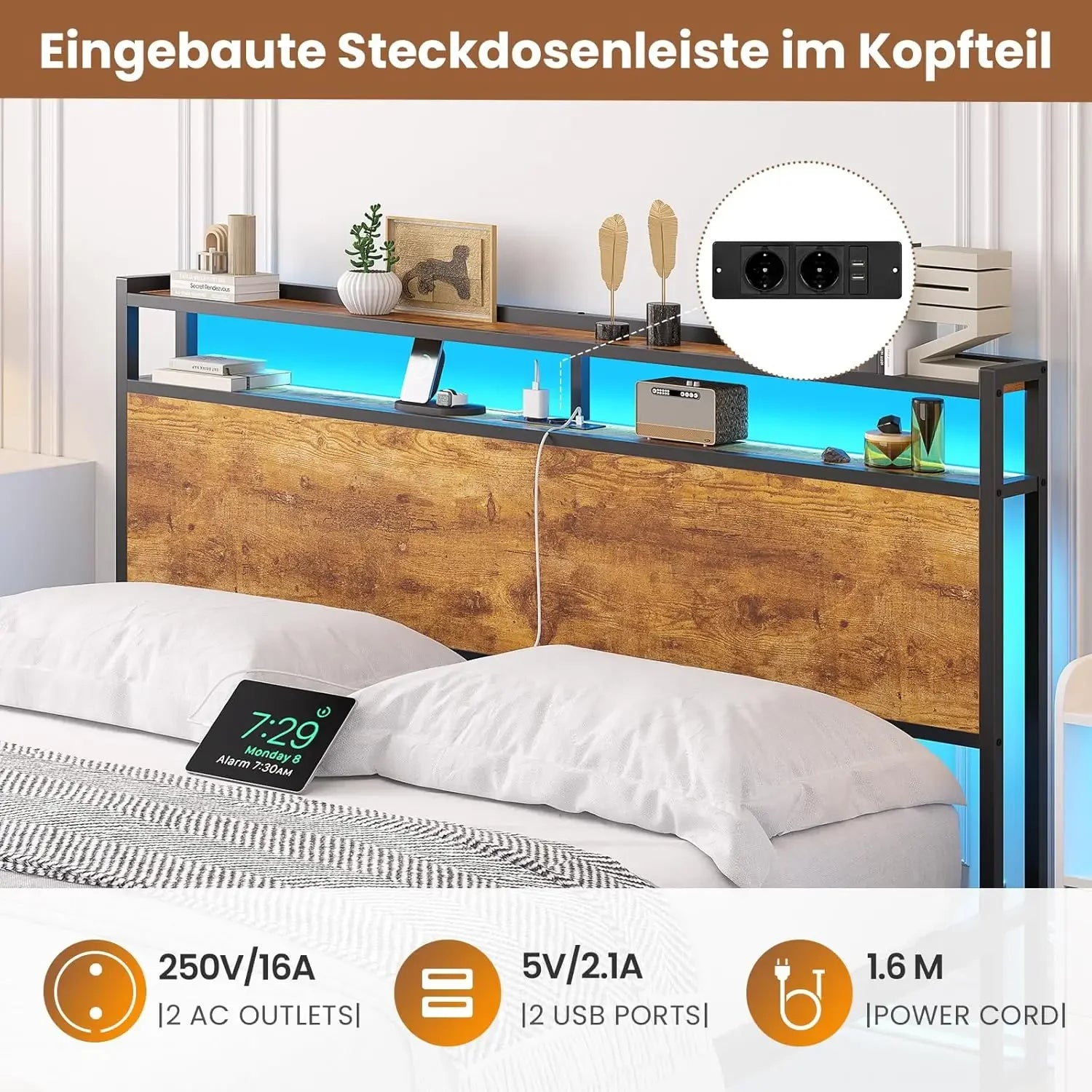 140x200 mit Gitterrahmen, integrierte LED-Beleuchtung und Ladestation (2 AC-Steckdosen, 2 USB-Anschlüsse), Bett 140x200 Mit Lattenrost Au