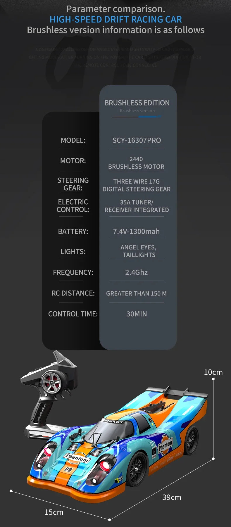 16307PRO 1:16 70KM/H Brushless Remote Control Car High Speed Drift Racing Car Four Wheel Drive Off Road Vehicle Boys Toy Gift