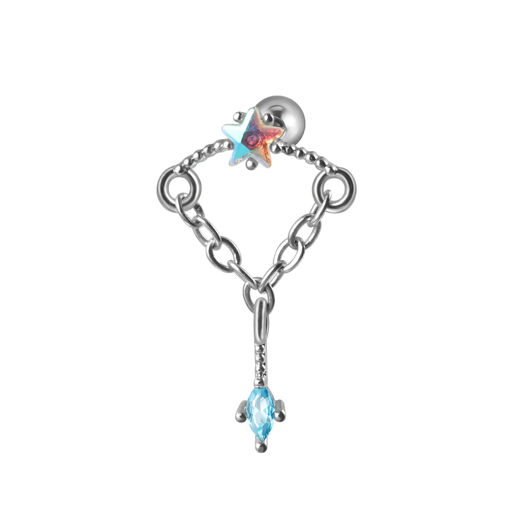 1PC 316L Surgical Steel Star Water Drop Heart CZ Chain Ear Cartilage Tragus Helix Stud Earring Daith Lobe Piercing Body Jewelry