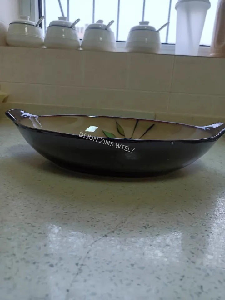 1Pc Vintage Bamboo Leaf Ceramic Bowl Salad Plate Exquisite Ceramic Cutlery Household Noodle Bowl Western Steak Cake Sushi Plate