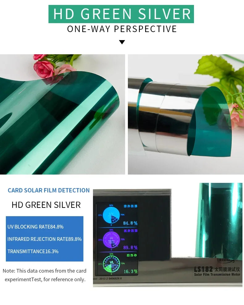 2/3/5M Einweg-Spiegel-Fensterfolie, Vinyl, selbstklebend, reflektierend, Solarfolie, Sichtschutz, Fenstertönung für Zuhause, silberner Glasaufkleber