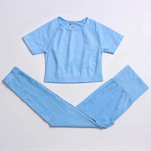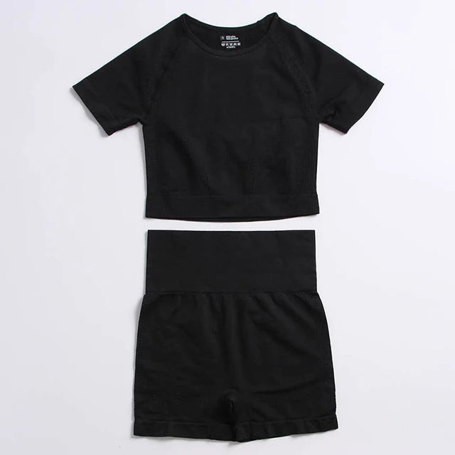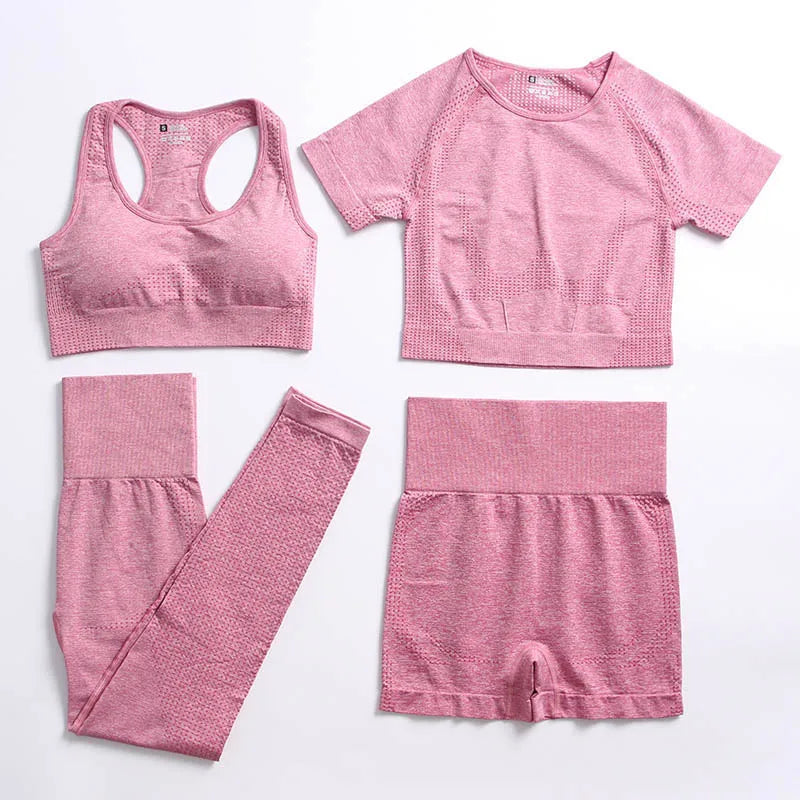 2/4PCS Summer Seamless Yoga Set Women Workout Clothes Sports Bra Short Sleeve Crop Top High Waist Legging Fitness Sports Suits