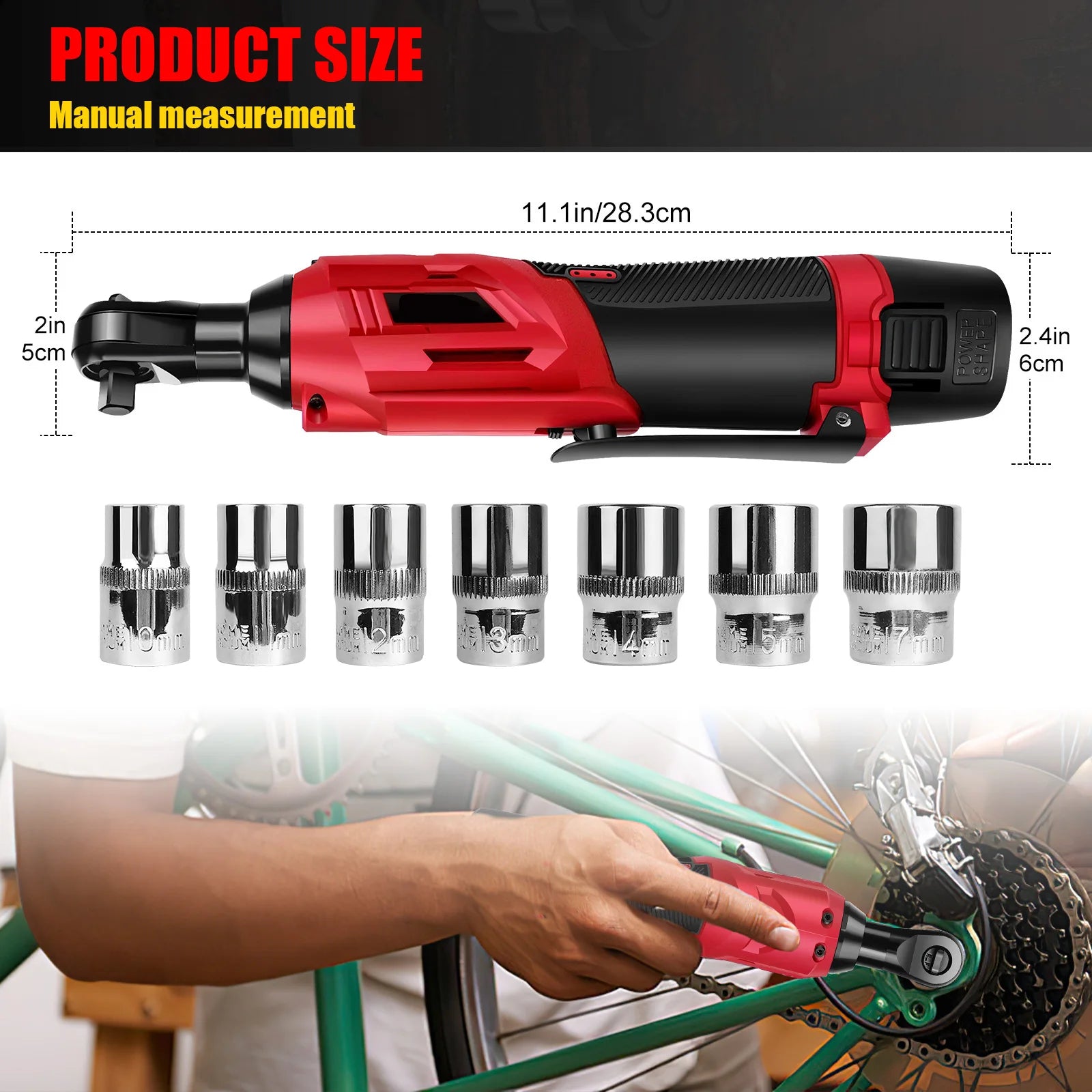 200 Nm kabelloser elektrischer Ratschenschlüsselsatz 90 ° 3/8-Zoll-Winkelschlüssel mit 7-teiligem Steckschlüsselsatz, Ratschenwerkzeug mit 2 Lithiumbatterien