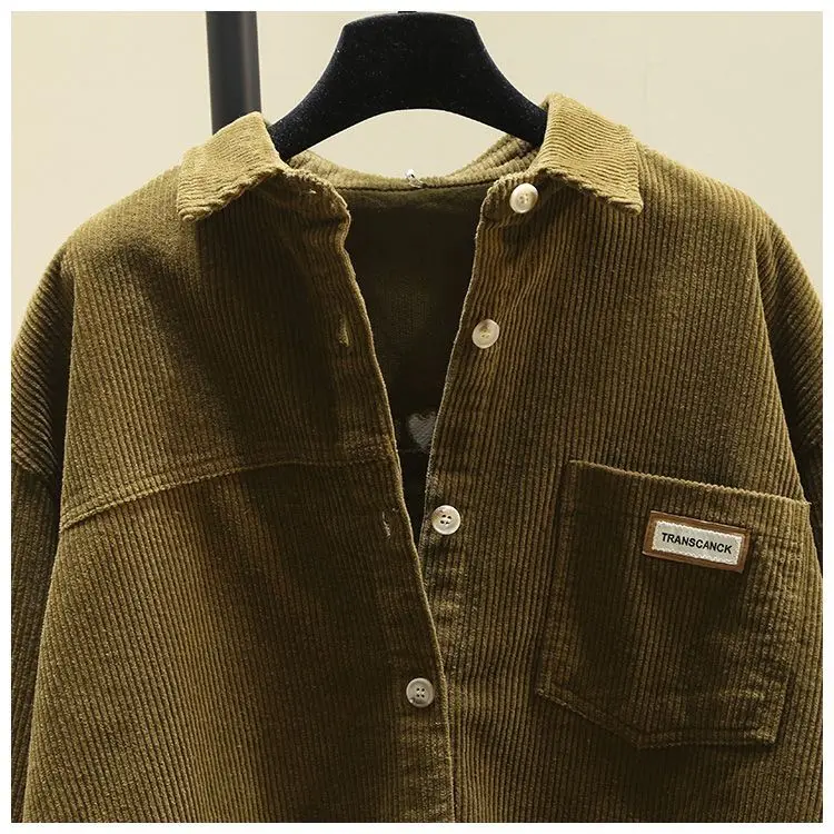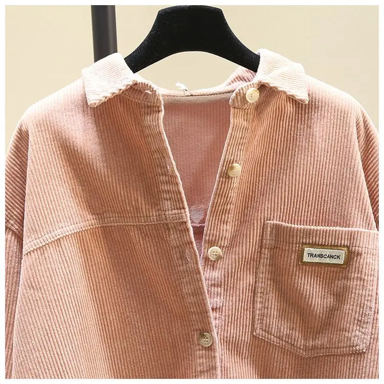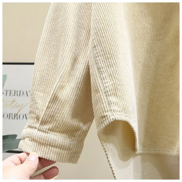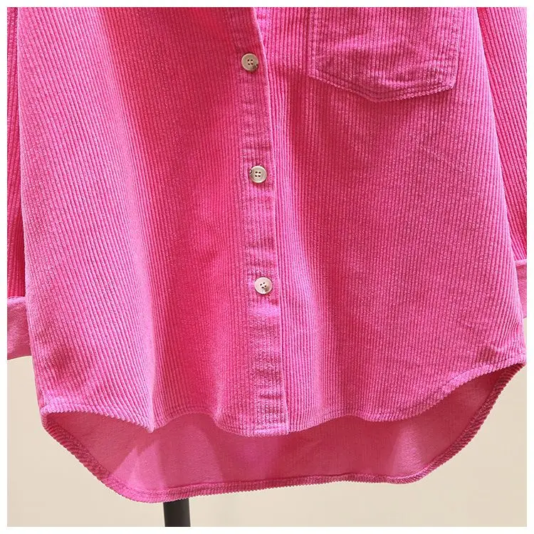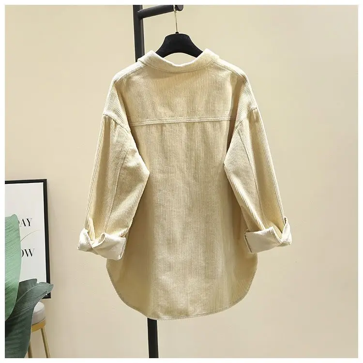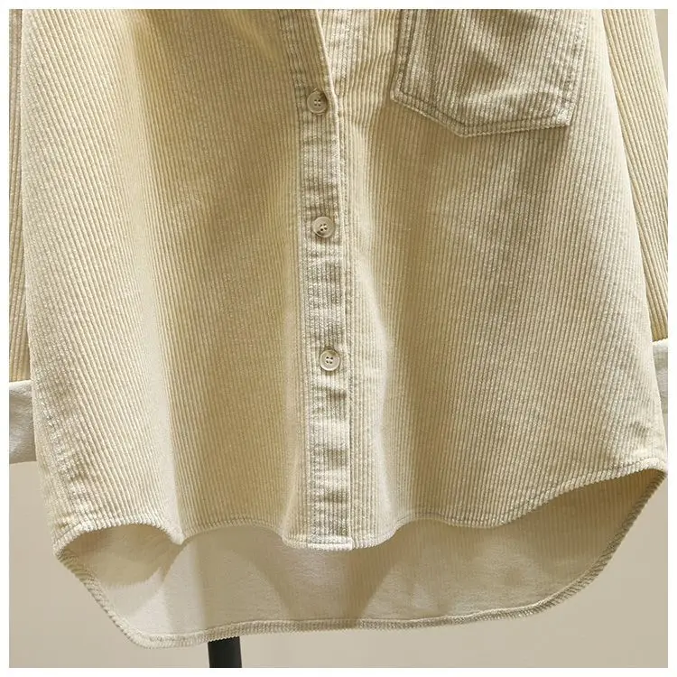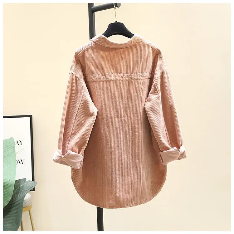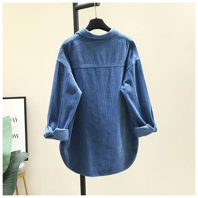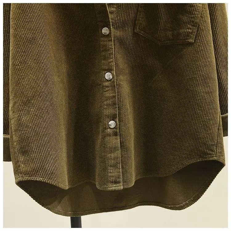 2023 frühling Herbst Cord Langarm-shirt für Frauen Koreanische Ausgabe Casual Mode Medium länge Shirts Weibliche Outwear Tops