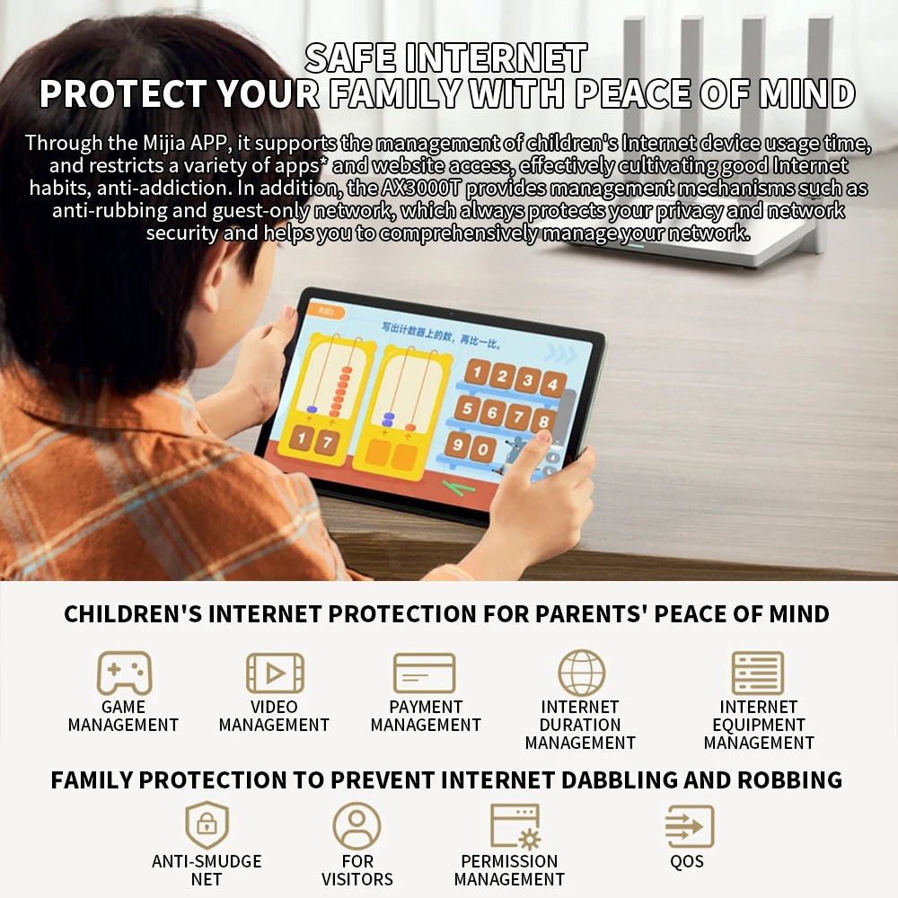 2024 NEW Original Xiaomi AX3000T Router 5GHz 160MHz Broadband 1.3GHz Processor High Speed NFC Connection For Home Office Games
