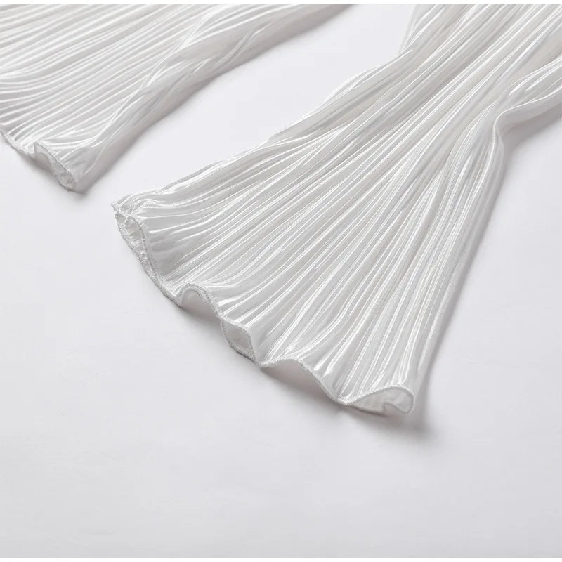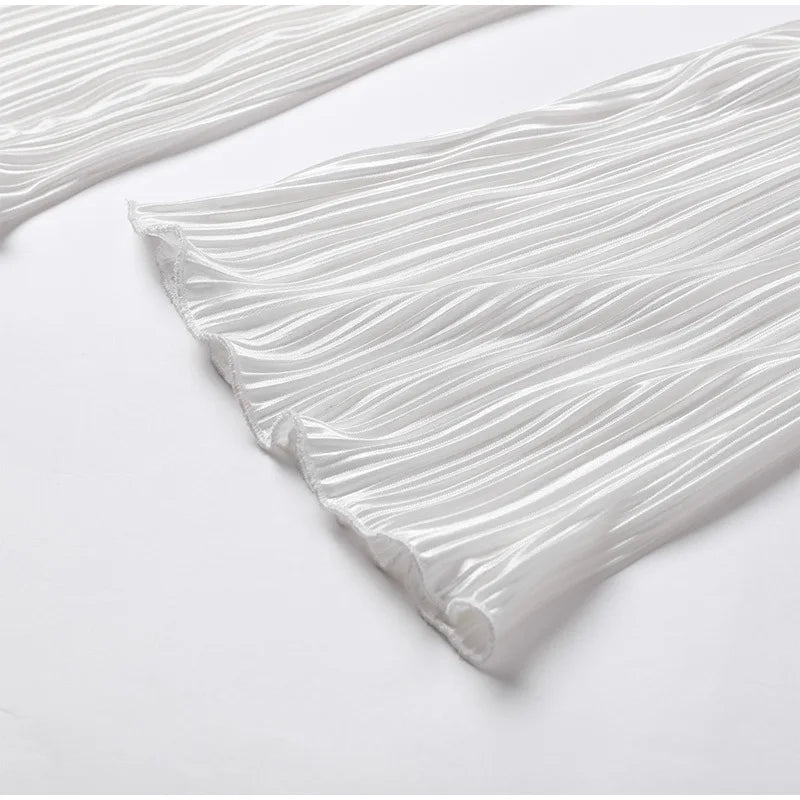 2024 Spring Autumn Women's New Solid Color Button Shirt Long Sleeve Drop Feel Loose Soft Wrinkle Casual Two Piece Set