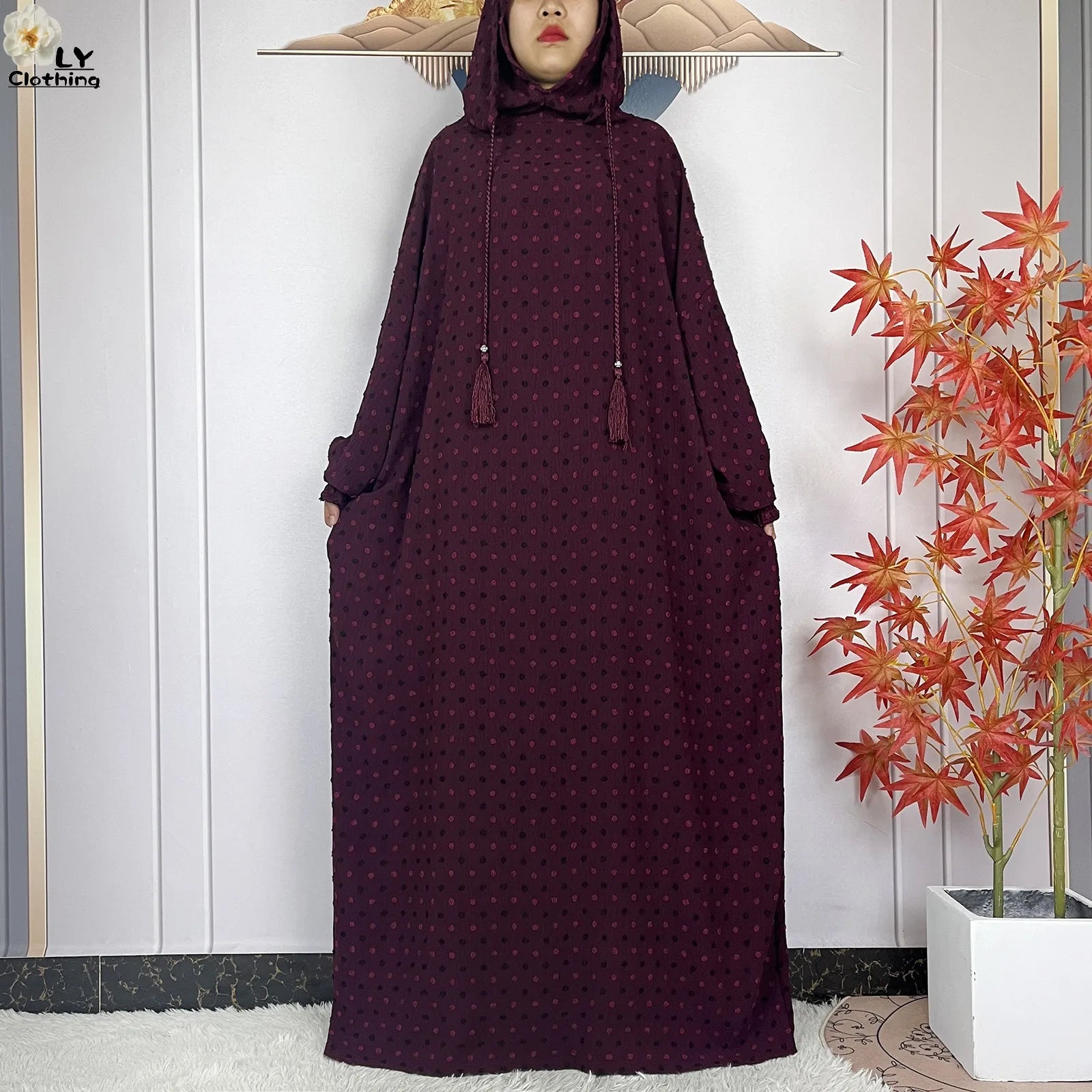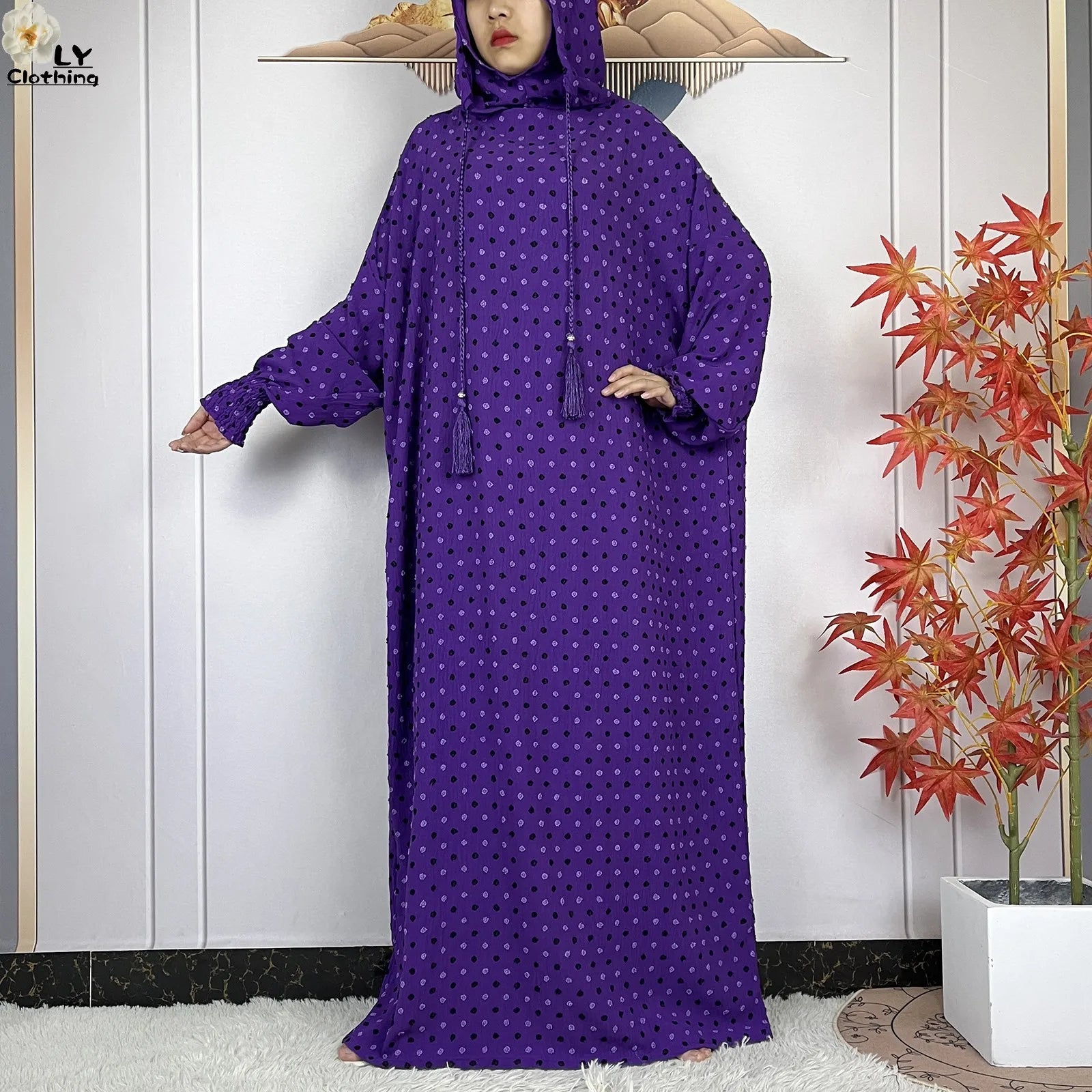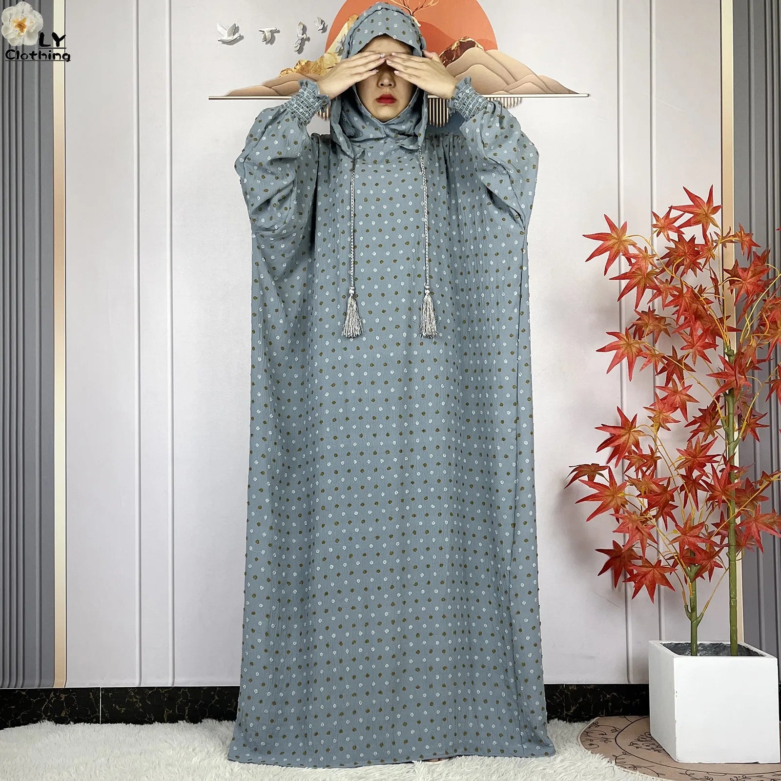 2024New Pure Cotton Ramadan Muslim Two-Hat Abaya Dubai Turkey Islam Prayer Clothes Loose Robe Islamic Women Traditional Clothing