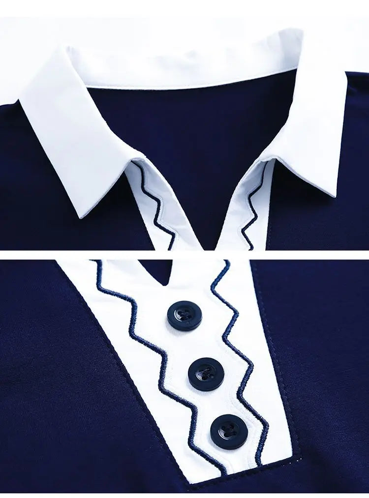 2025 Autumn New Women Clothes Office Lady Simplicity Patchwork Polo-Neck Top Tee Ladies Fashion Loose Buttons Long Sleeve Shirts