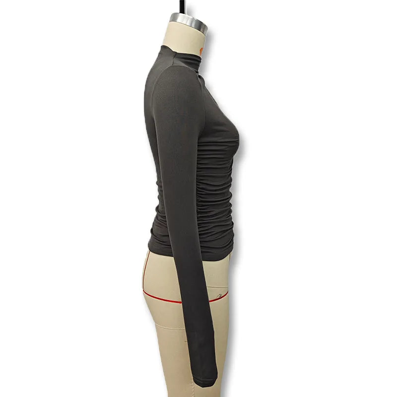 2025 Autumn Solid Color Folds Turtleneck Slim T Shirt Women Long Sleeves Bottoming Shirt Ladies Tee Shirt Tops Camisetas Mujer