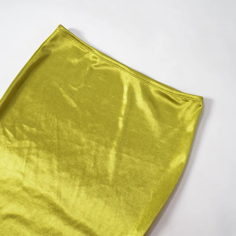 2025 Autumn Stain Long Solid Color Skirt Women Elegant High Waist Side Split Maxi Skirts Party Sexy Clothes for Female
