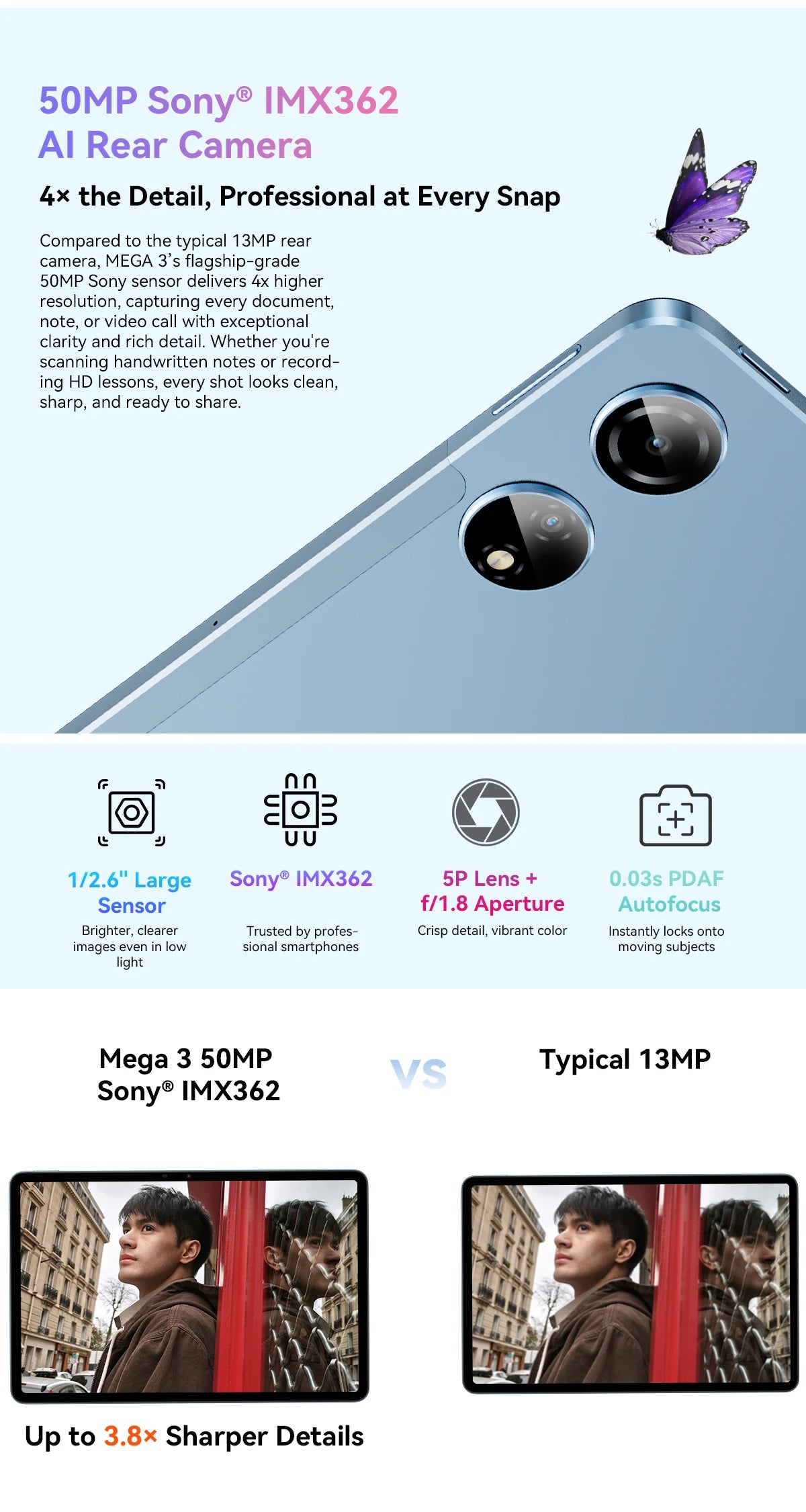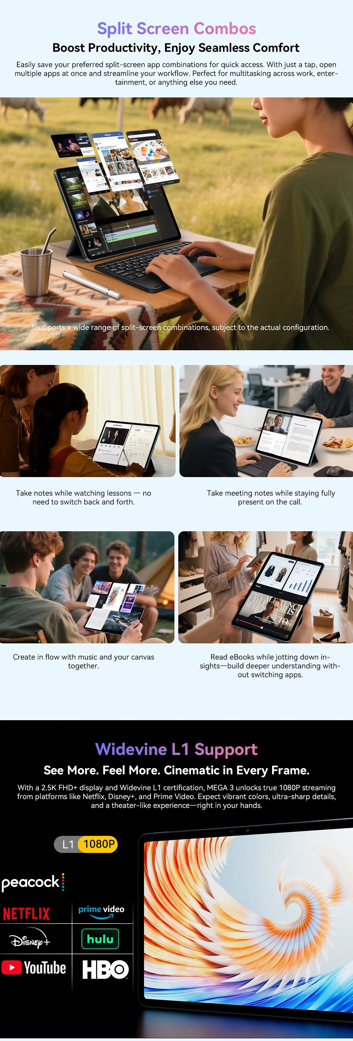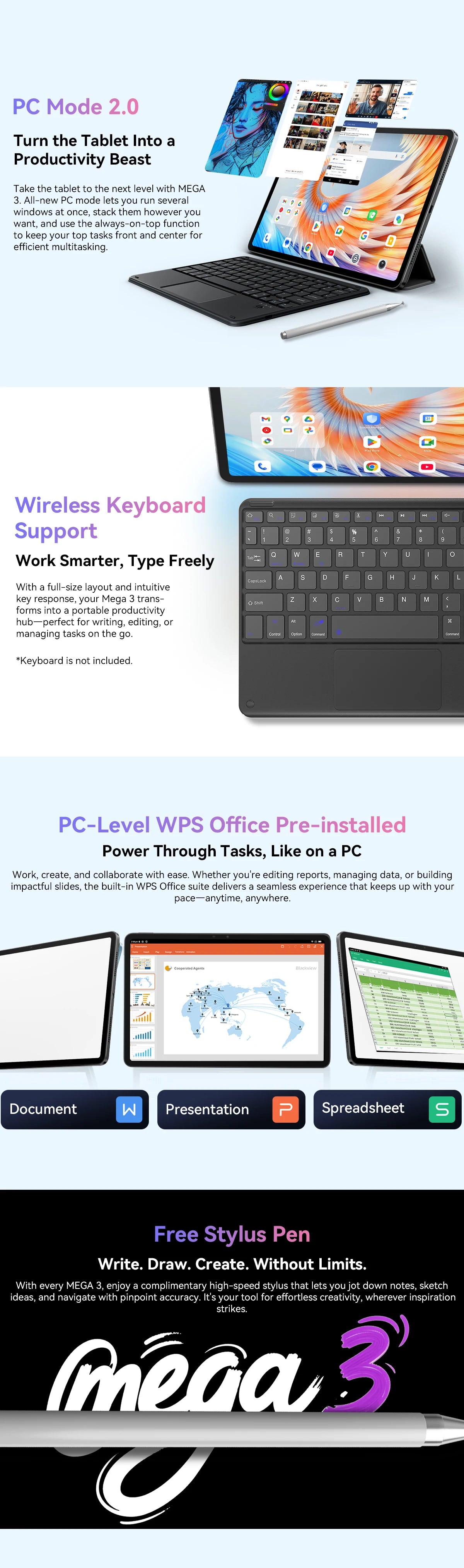 2025 Blackview MEGA 3 Tablet Android 15 Pad 12.1" 2.5K 90Hz Display 12GB 256GB 8800mAh Tablets PC 33W Fast Charging 50MP Camera