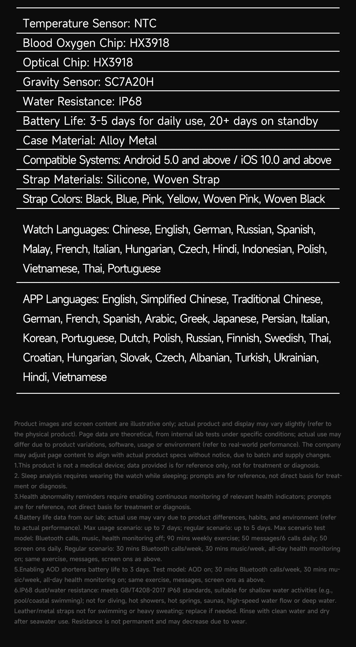 Metrics measured: Heart Rate Monitor,Women's Health Monitoring,Blood Oxygen Monitor,Sleep Monitor,Blood Pressure Monitor,Body Temperature Monitor,Stress Monitor
