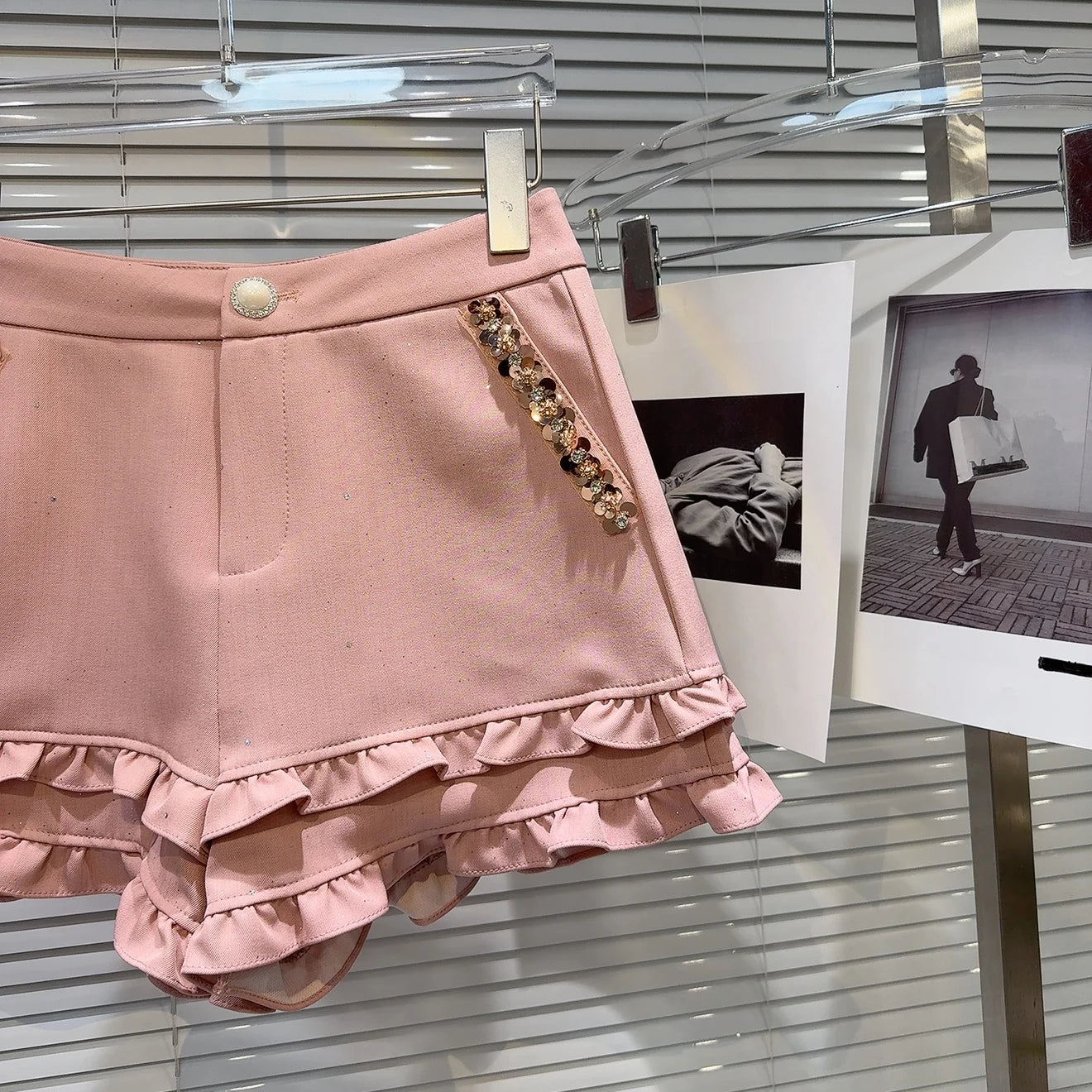 2025 Summer Clothes New Fashion Sequined Beaded Fungus Edge Pants Three-point Shorts Sweet Girls Temperament Short Pants Women