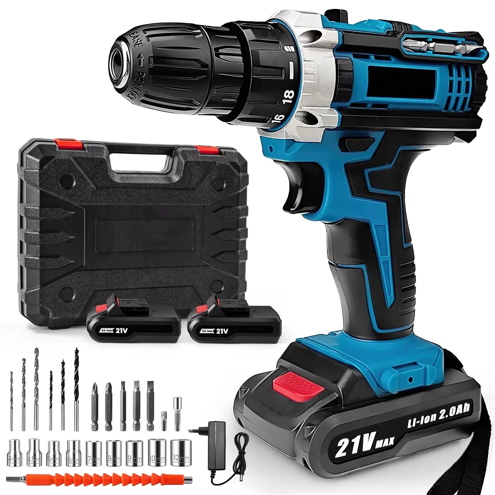 21 V kabelloser elektrischer Schlagbohrschrauber, Schraubendreher, 1600 U/min, Hochgeschwindigkeitsbohrer, wiederaufladbar, 32 Drehmoment, Haushaltsbohrmaschine, Elektro-DIY-Werkzeuge