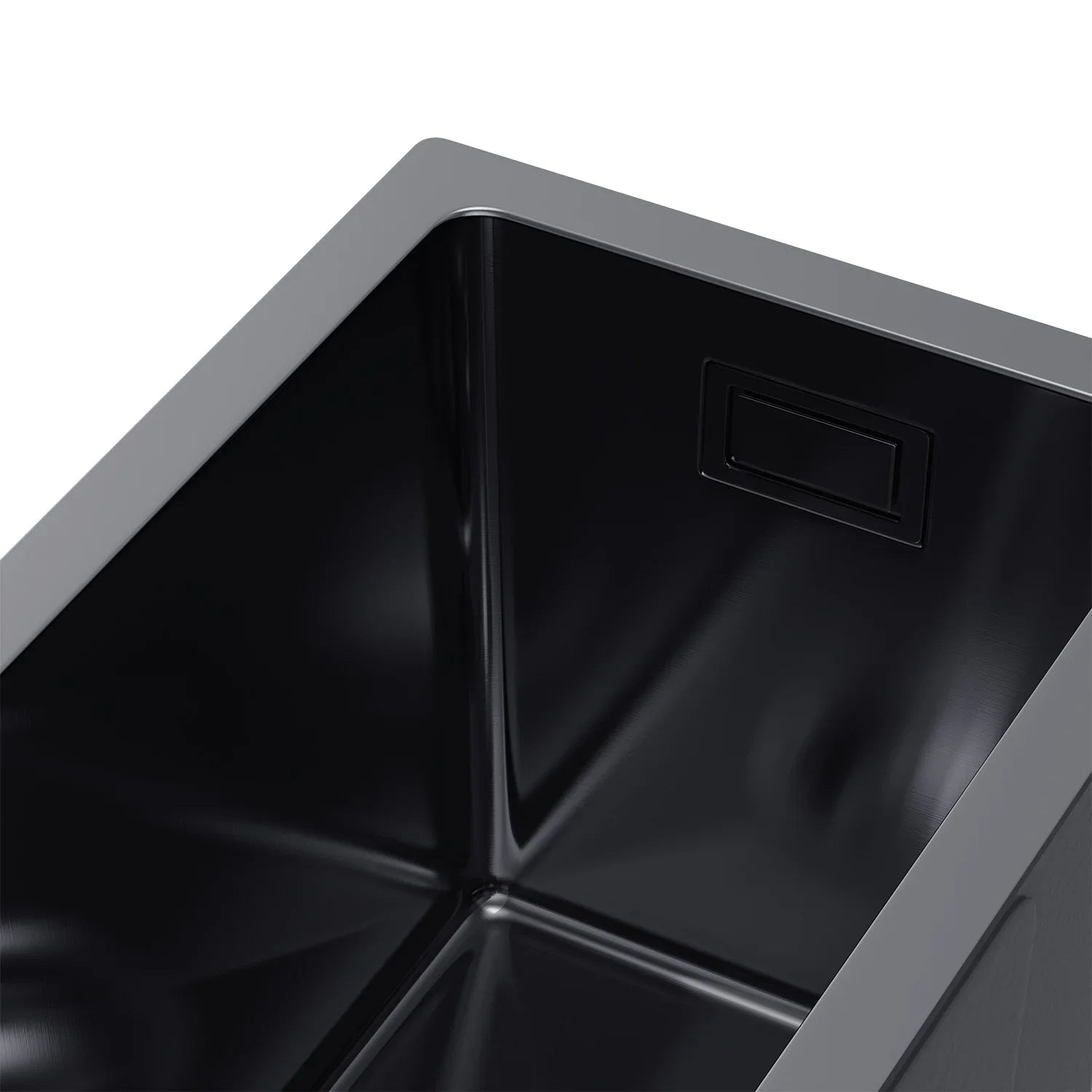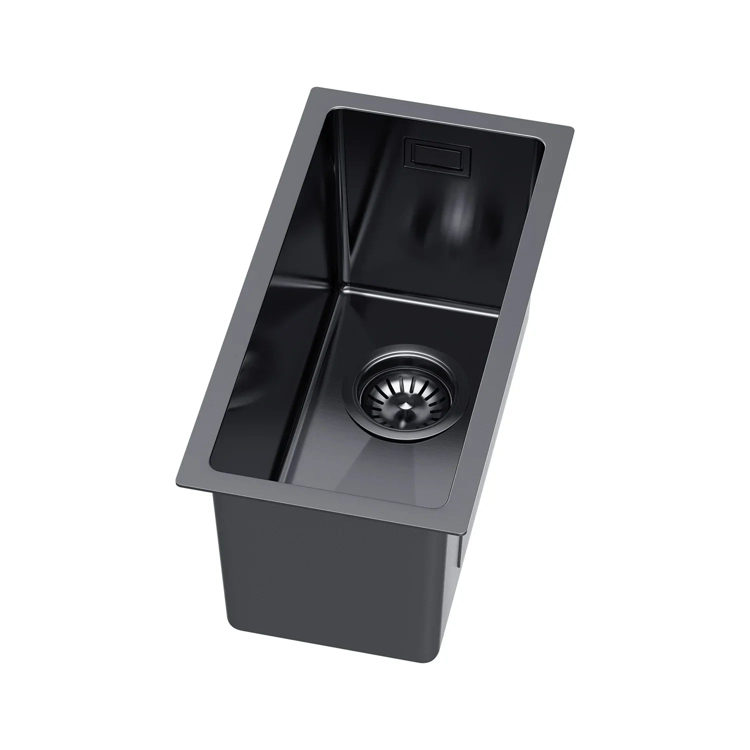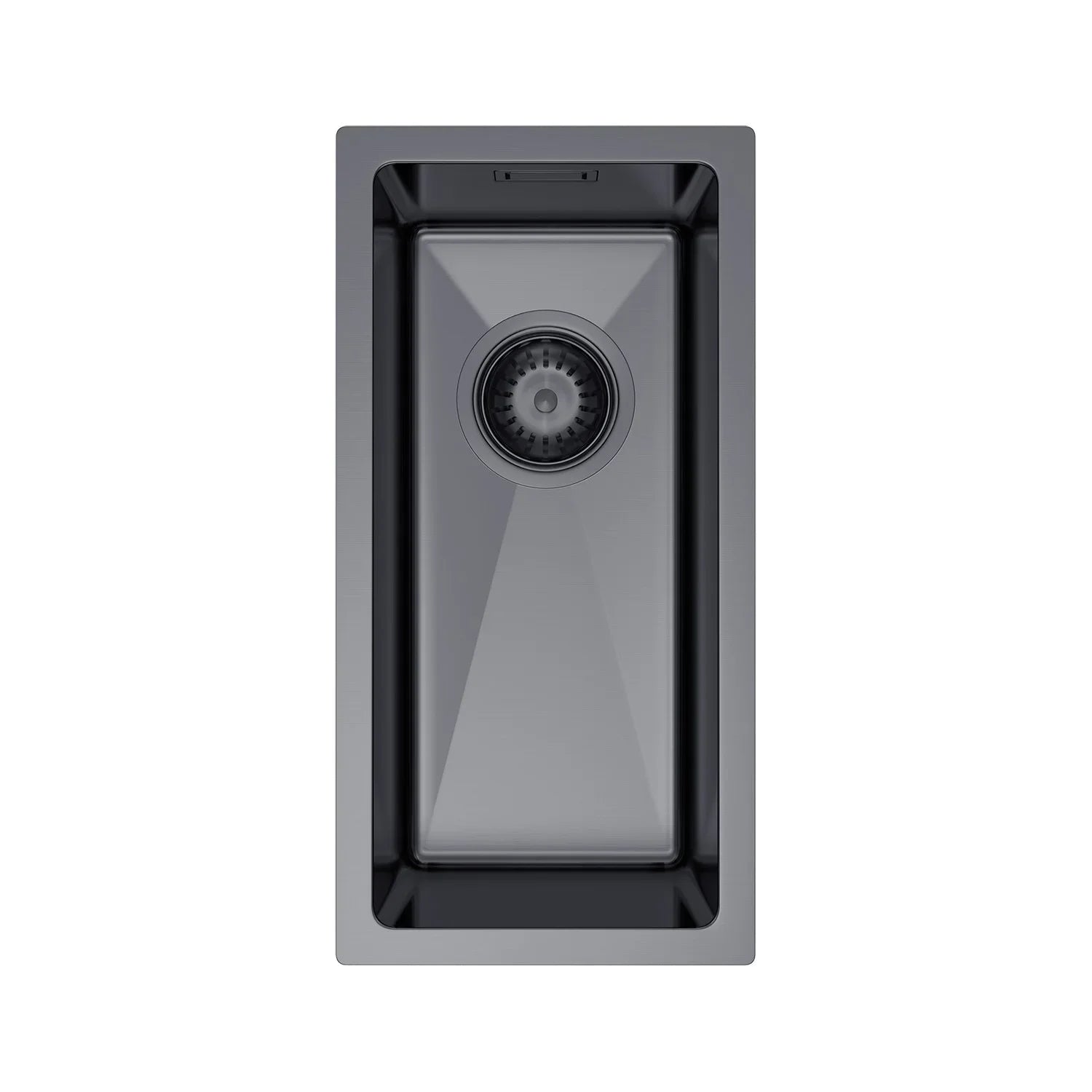 22 x 44 cm große Graphit-Edelstahl-Küchenspüle – kein Wasserhahnloch, PVD-beschichtet, oben/unter/unten/untersetzbar, mit Überlauf- und Abflussset