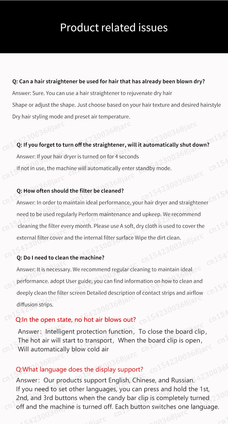 Function: Anion,Thermostatic,Hot/cold air,Temperature control