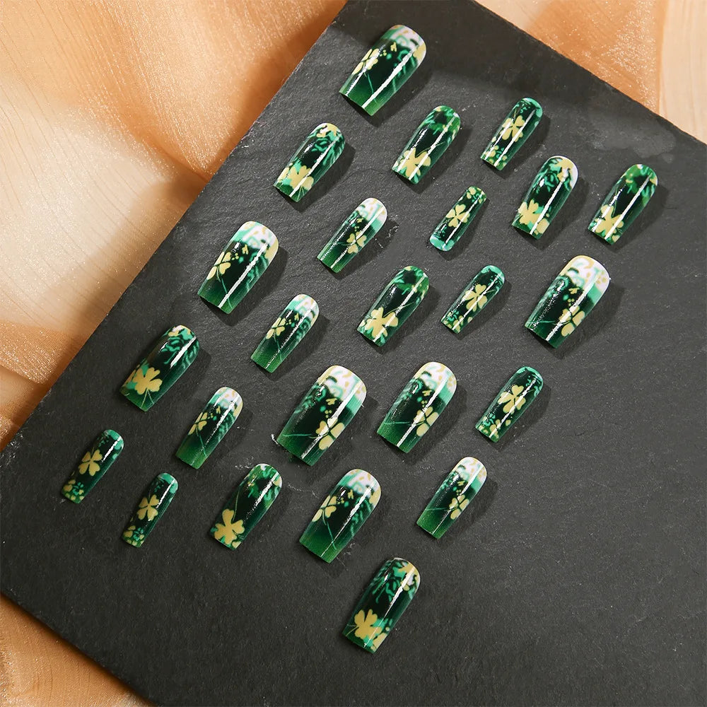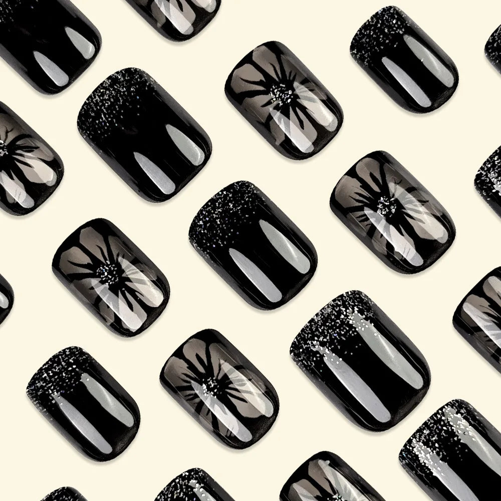 24pcs/set short medium long fake nails for Spring summer season gradient peach flowers butterfly heart press on false nail art