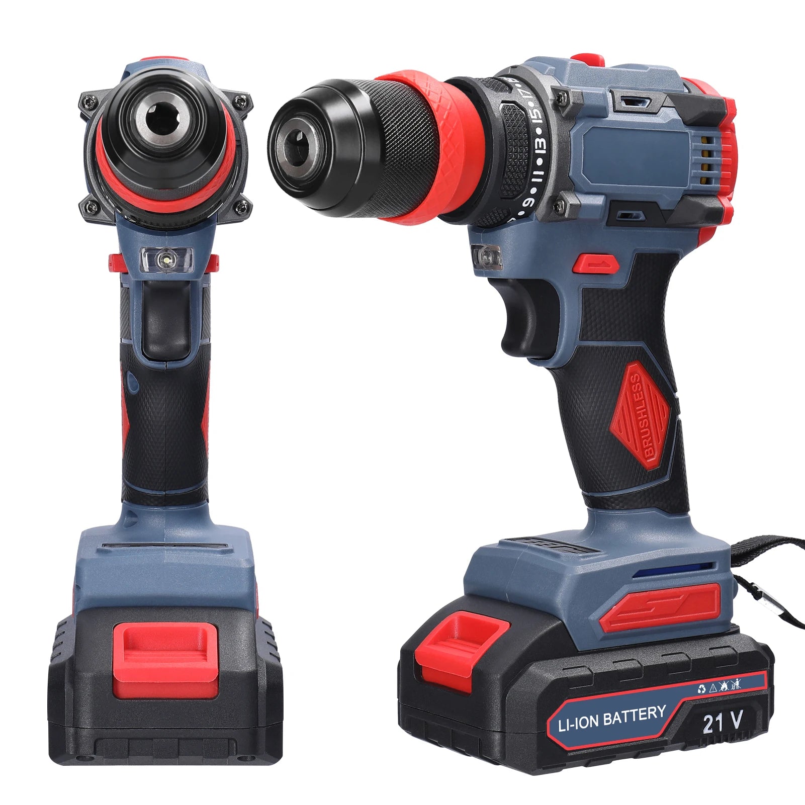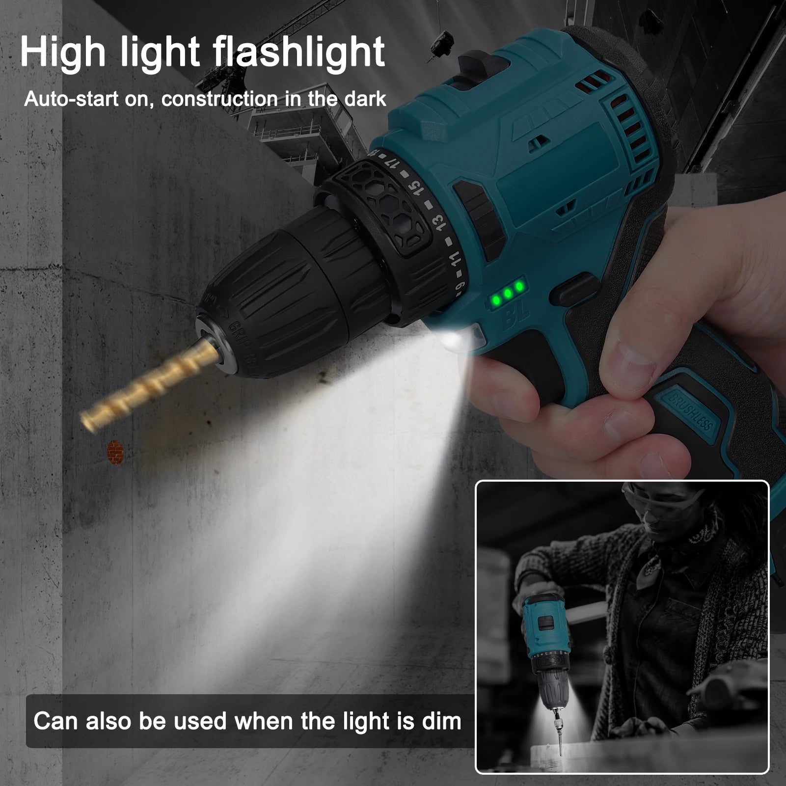 2in1 Akku-Elektroschrauber Bohrer Bürstenloser Motor 45/55 Nm Drehmoment Stufenlose Geschwindigkeitsregelung Hand-Lithium-Treiber-Bohrmaschine