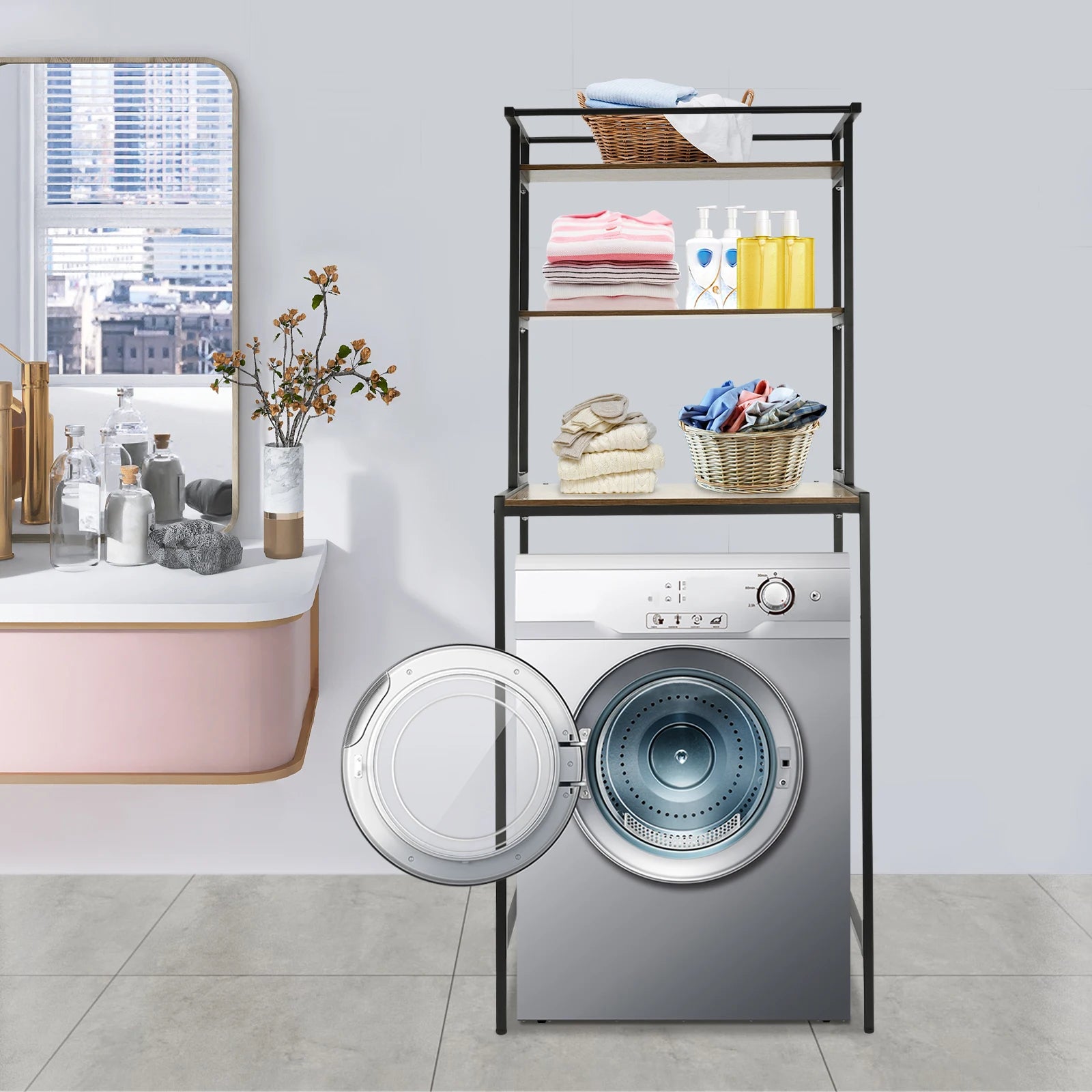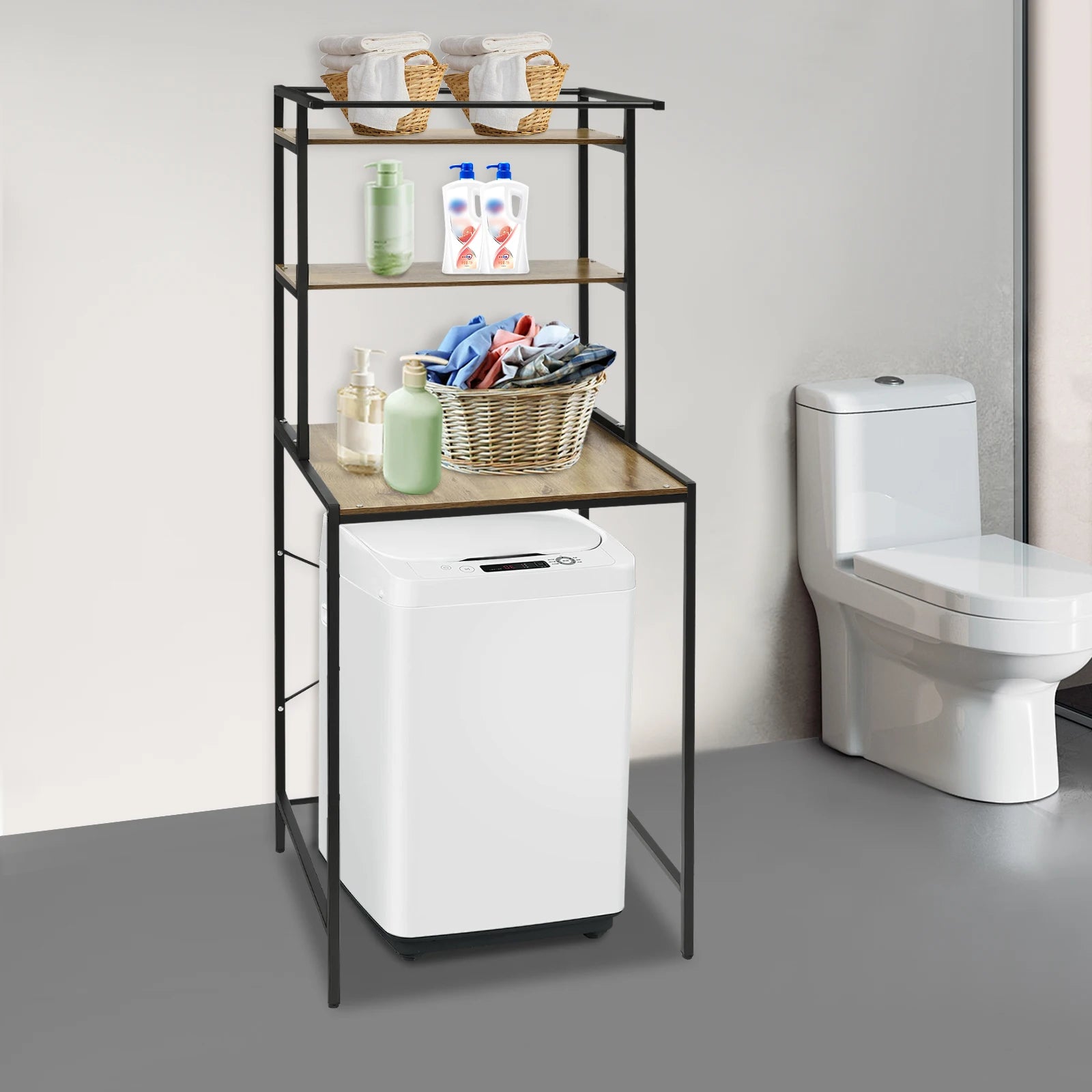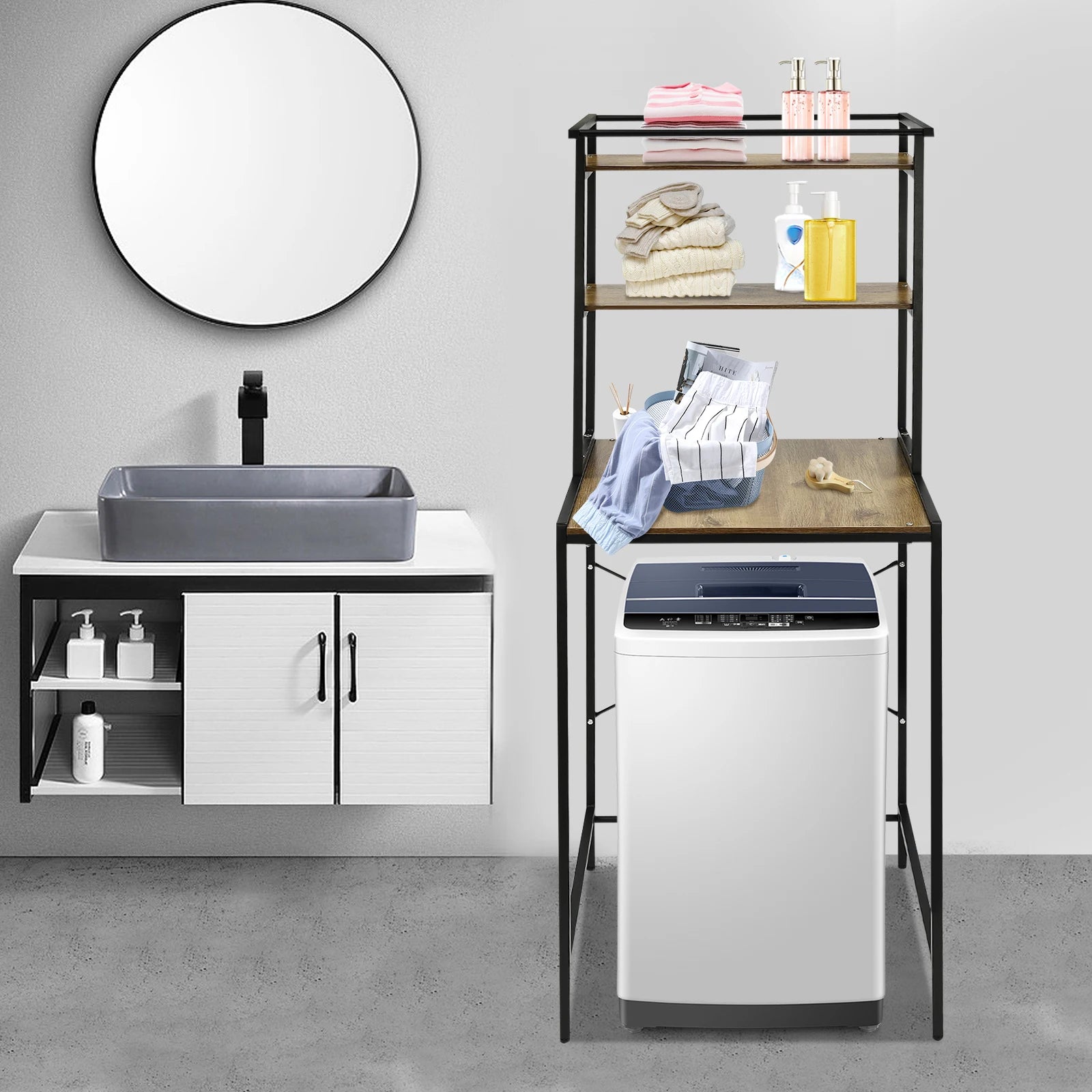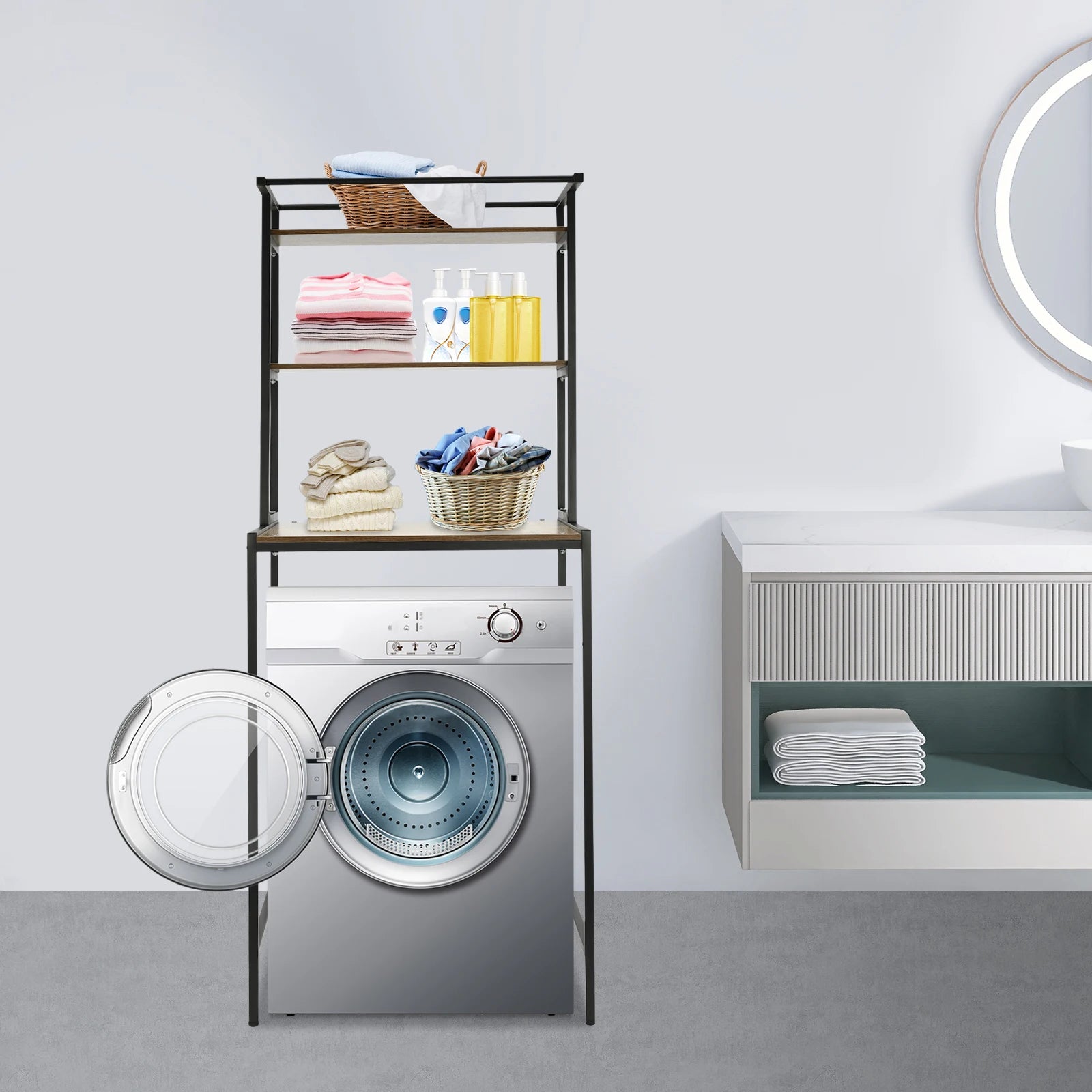 3-stufiges Aufbewahrungsregal für Waschmaschinen und Trockner, robustes Wäscheständer mit Bodenfach, Organizer-Ständer für Badezimmer, Waschküche