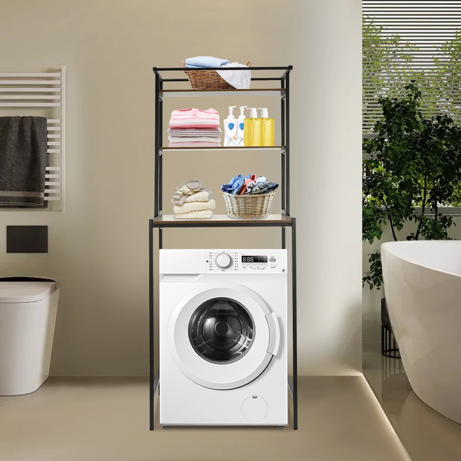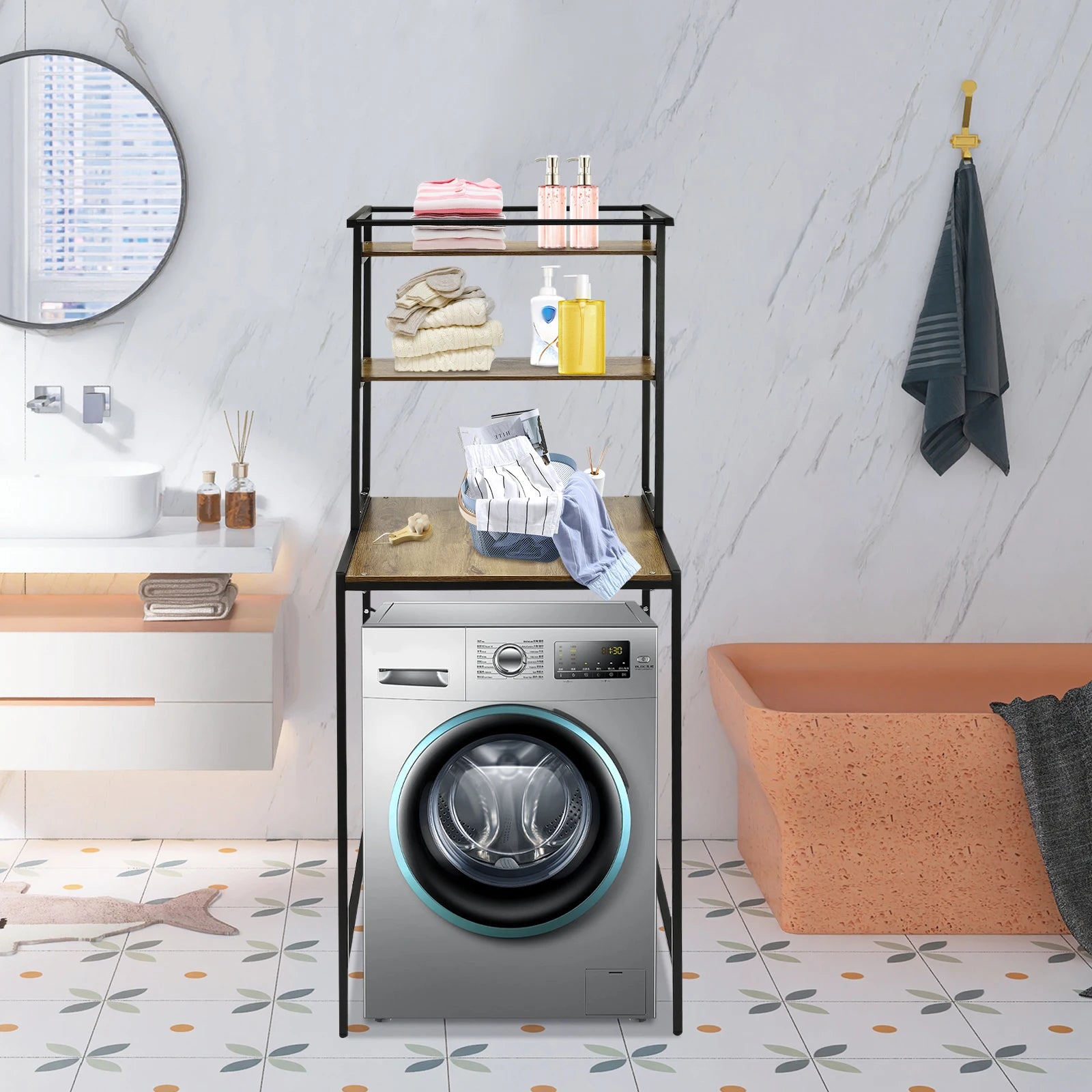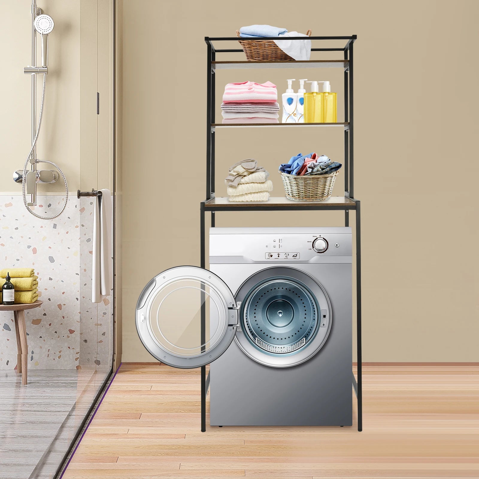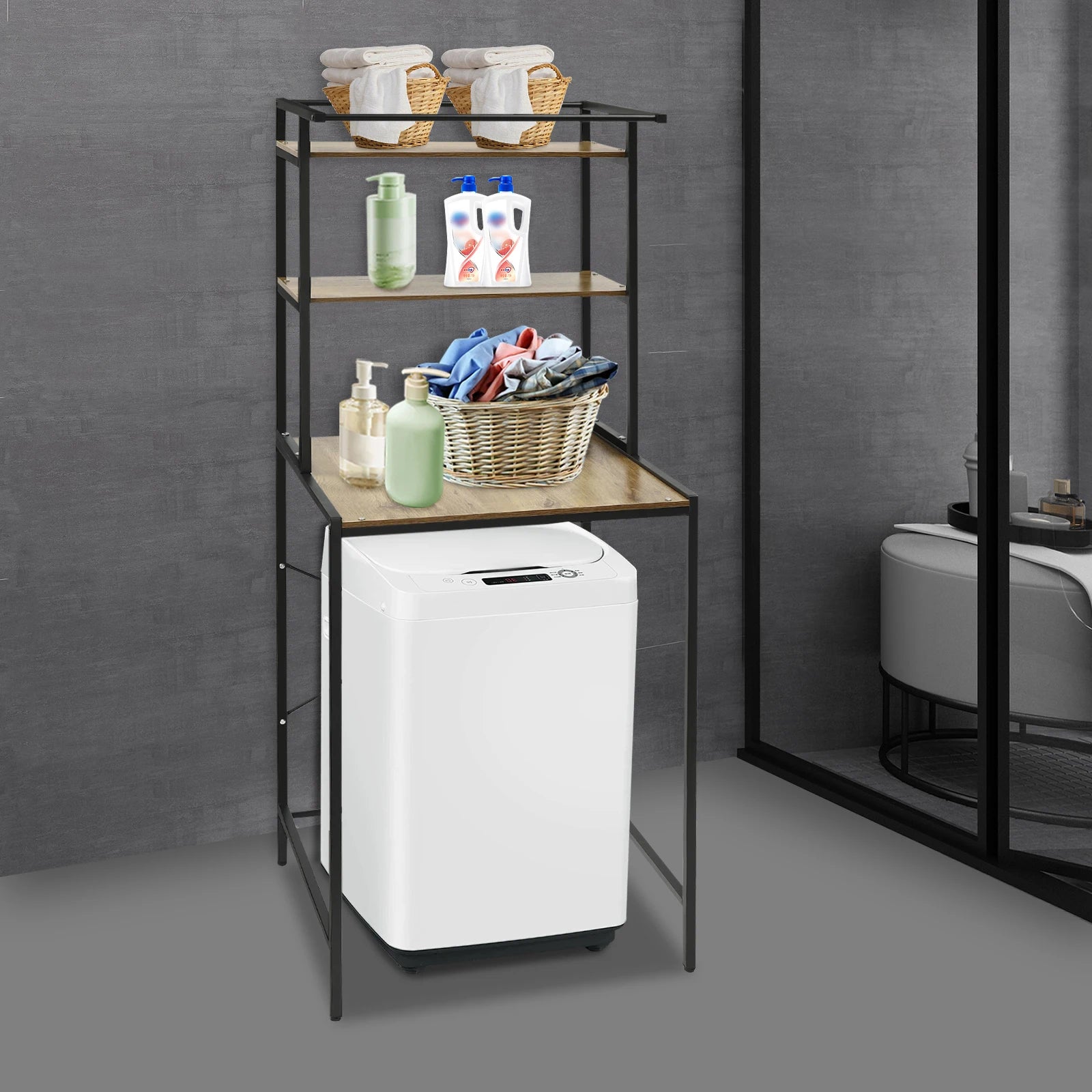 3-stufiges Aufbewahrungsregal für Waschmaschinen und Trockner, robustes Wäscheständer mit Bodenfach, Organizer-Ständer für Badezimmer, Waschküche