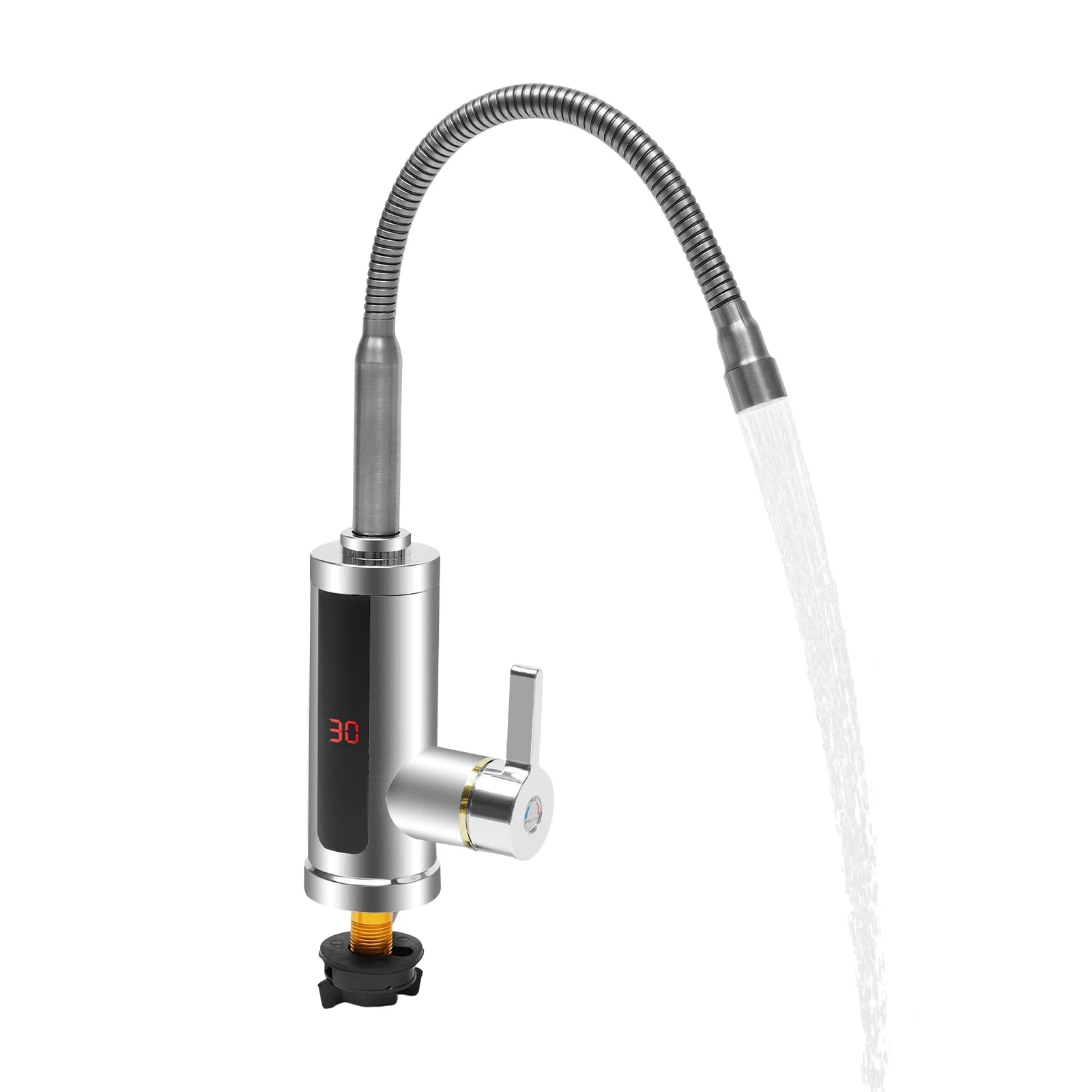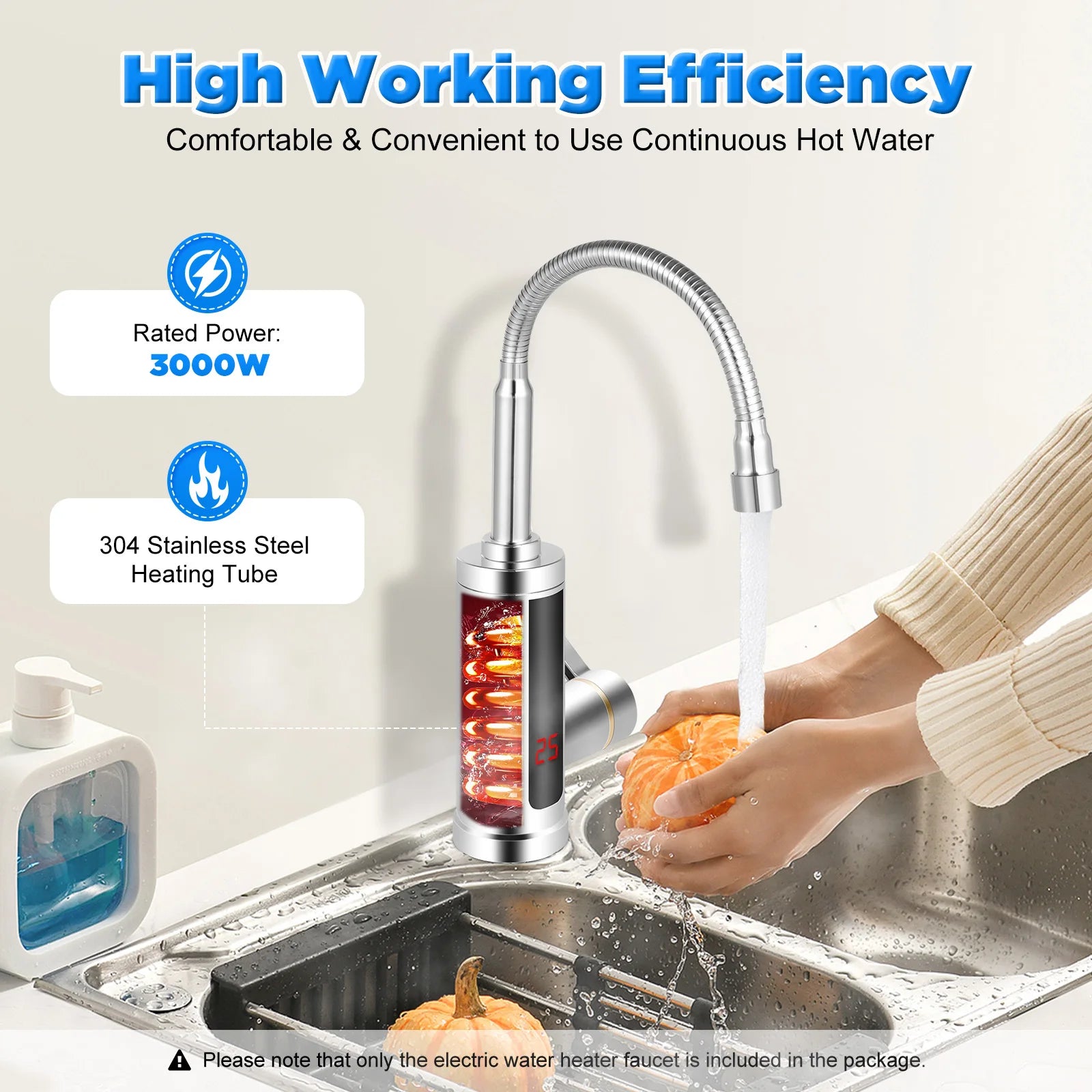 3000W Electric Hot Water Faucet 360° Rotating Stainless Steel Kitchen Faucet Instant Heating Led Digital Display