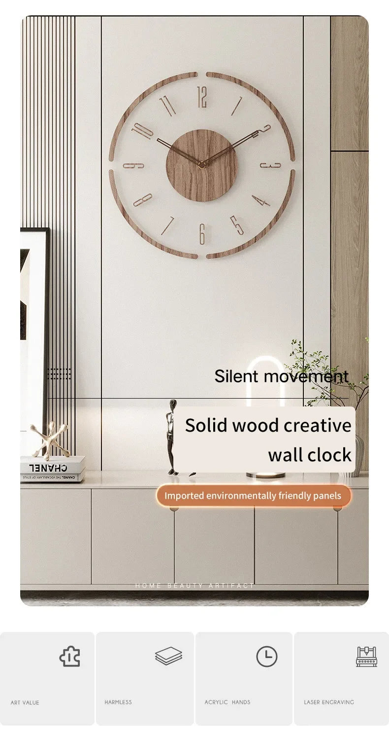 35 cm Wanduhr Wohnkultur Massivholz Kreative Stille Quarzuhr Wohnzimmer Dekoration Stumm Nordic Wanduhr X-Space