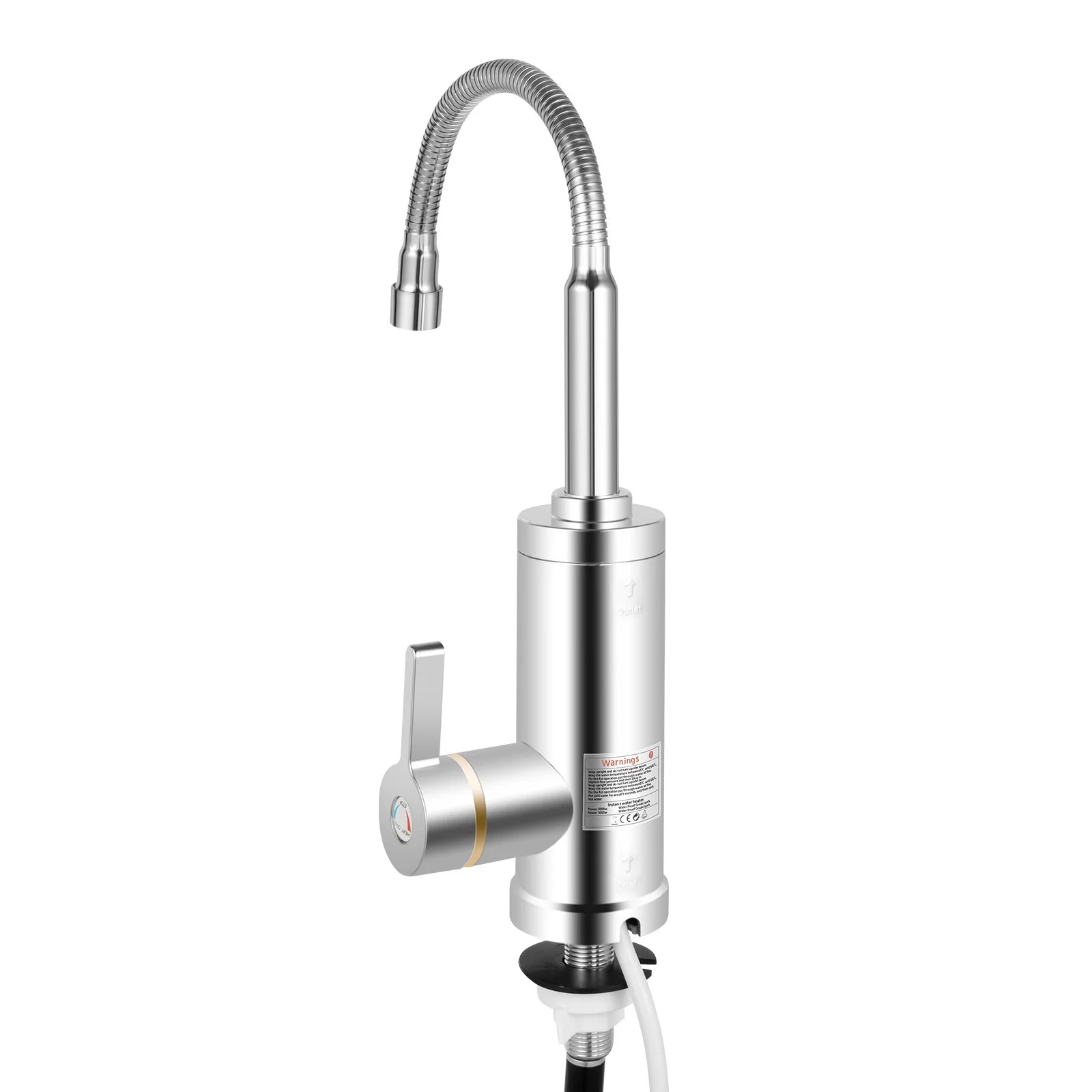 360° Rotating Electric Water Heater Faucet,Stainless Steel Hot Water Faucet W/ Inlet & Outlet Pipes and LED Display,Silver