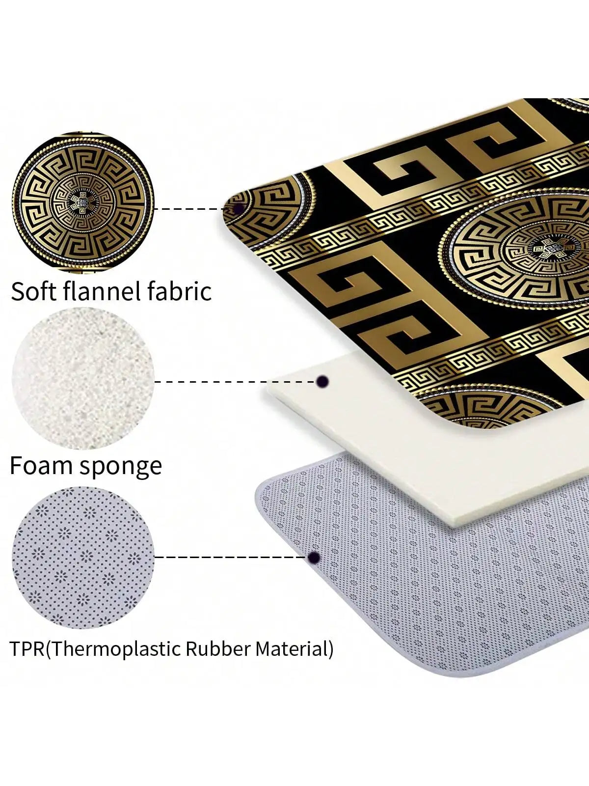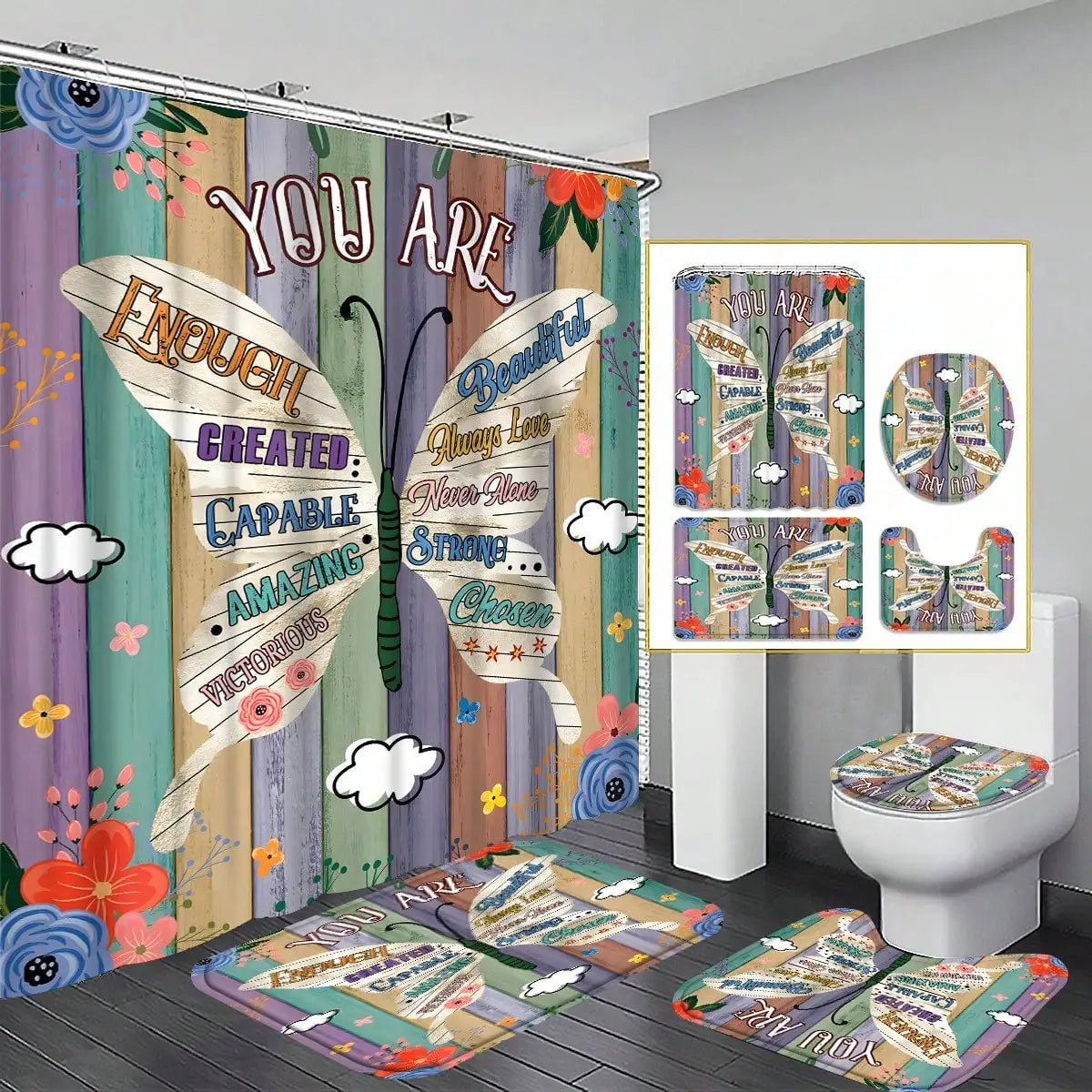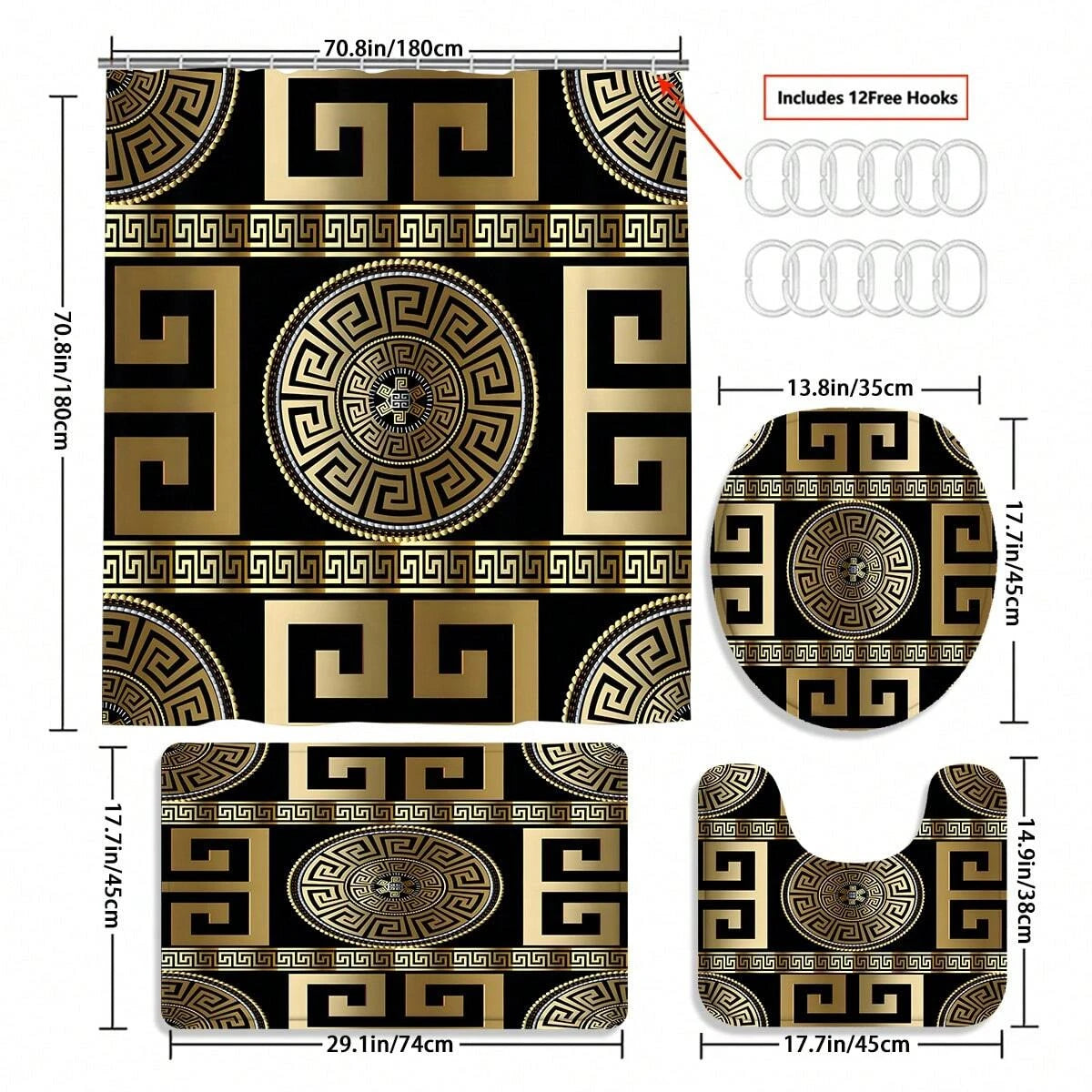 4-teiliges Badezimmer-Set, wasserdichter Stoff-Duschvorhang im Palast-Stil mit 12 Haken, rutschfeste Badezimmermatte, U-förmige Toilettendeckelabdeckung