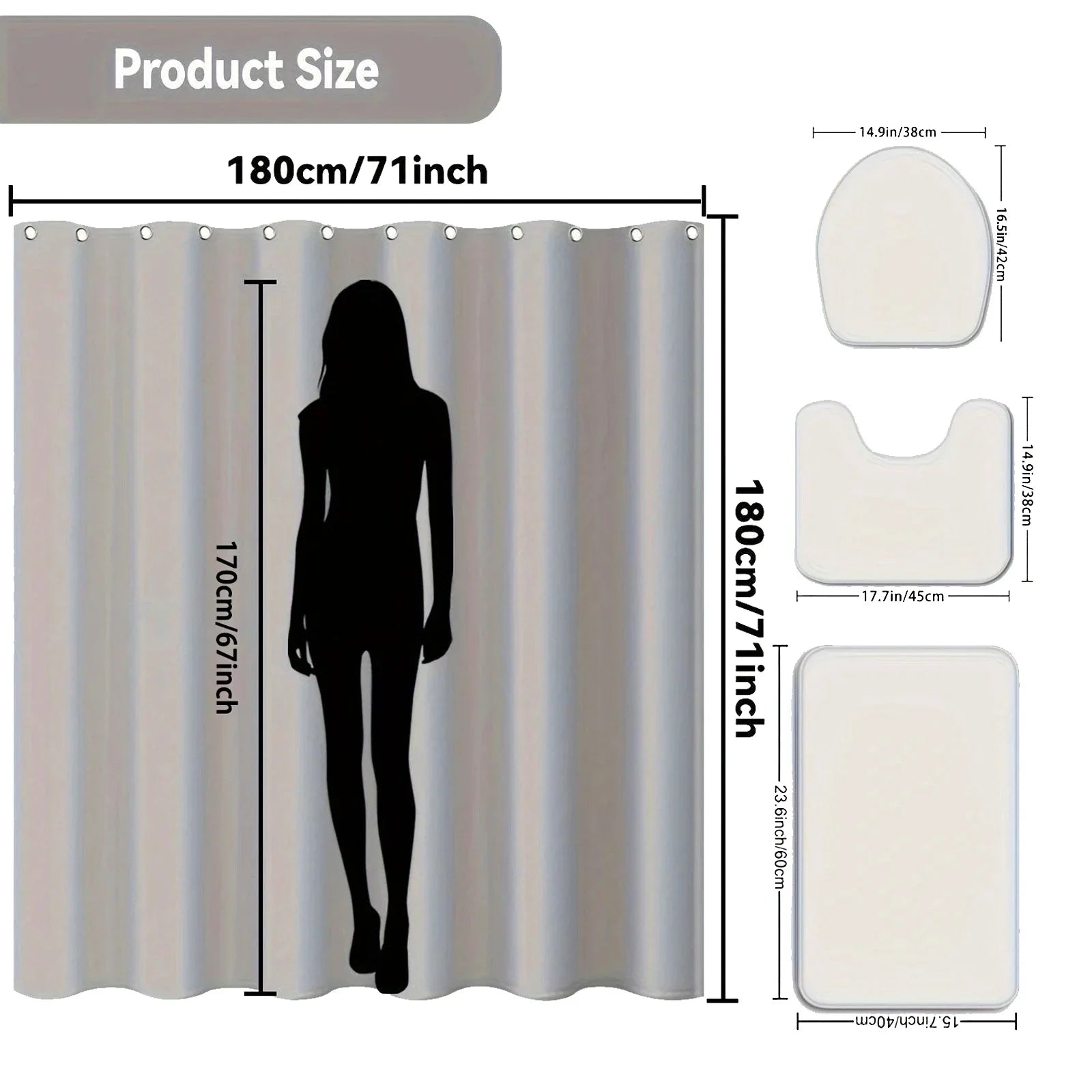 4-teiliges Set mit technologischen, blauen und schwarz karierten, bedruckten, wasserdichten Duschvorhängen mit 12 Haken, Badezimmer-Fußmatten