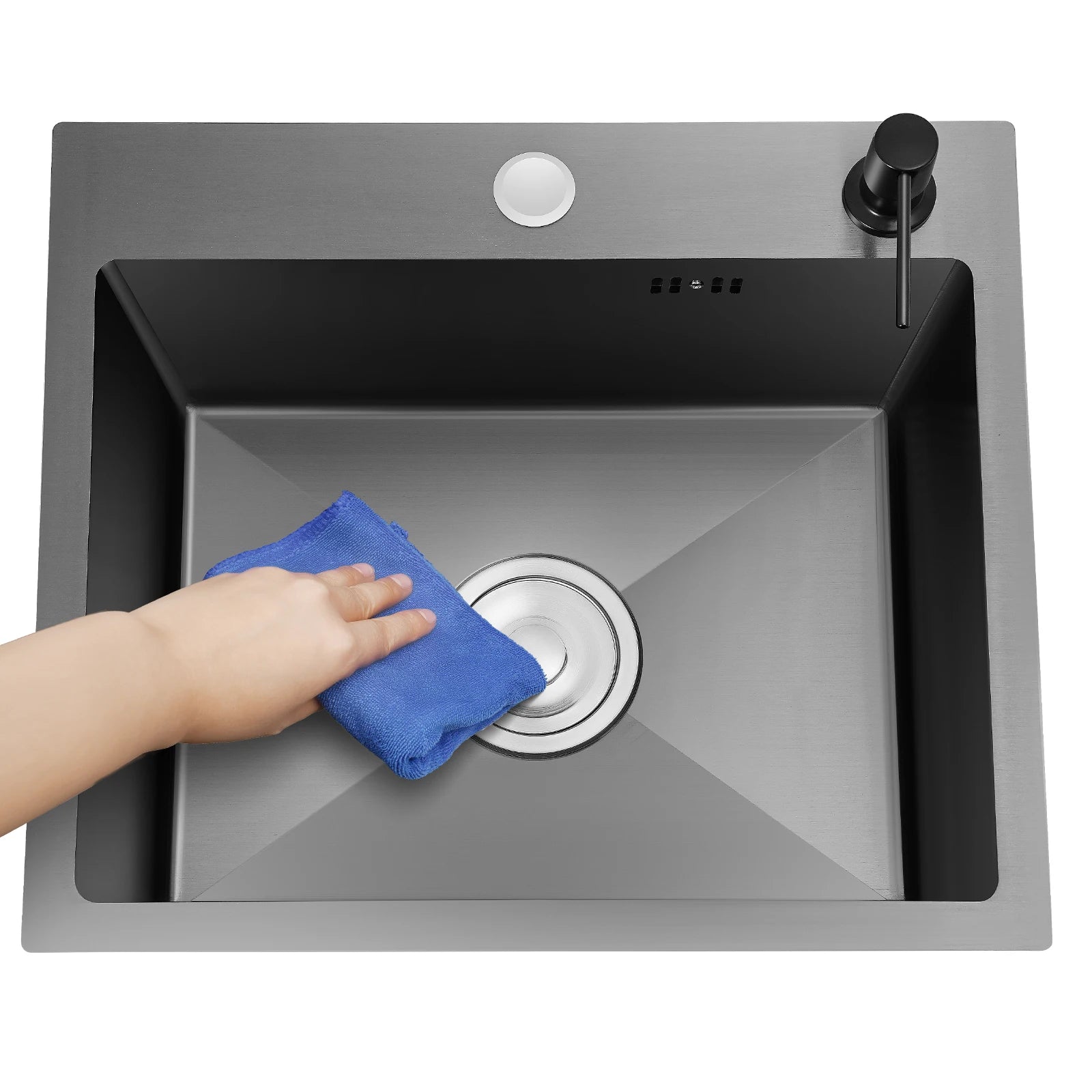 40 x 45 x 20 cm Küchenspüle-Set, Spüle aus Edelstahl 201 mit Abflusskorb und Seifenspender für Küchen, Badezimmer, Waschräume