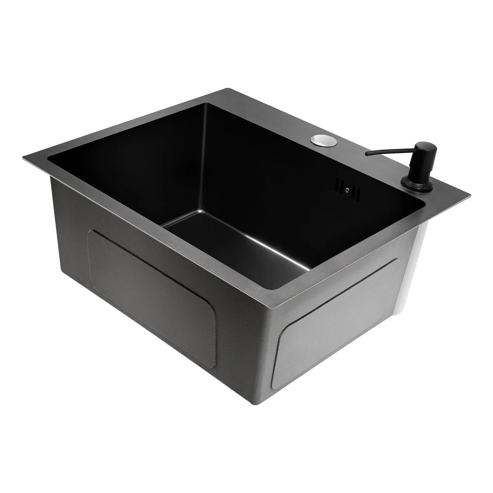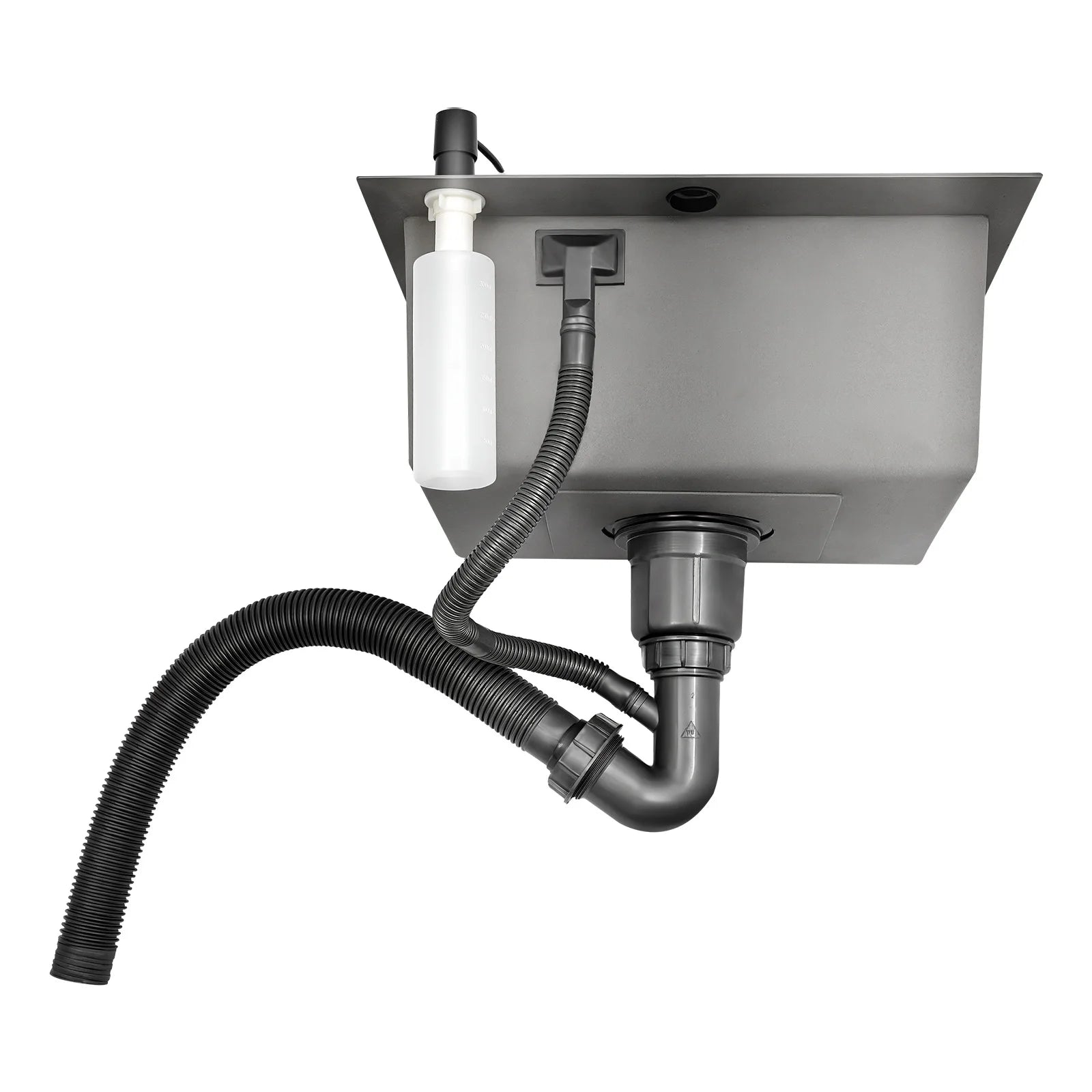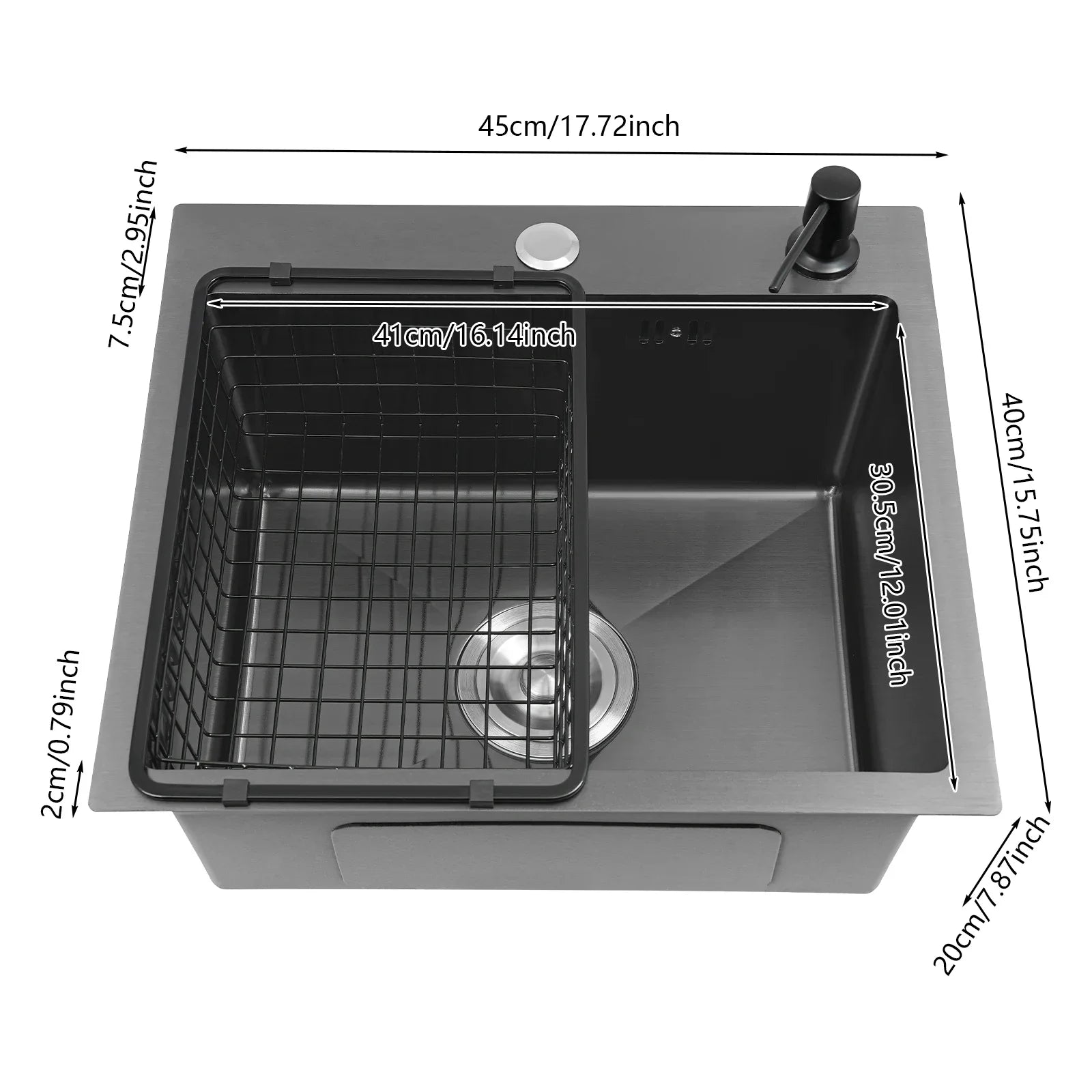 45 x 40 cm Edelstahl-Küchenspüle für Zuhause, kommerziell, großes Einzelwaschbecken mit Abflusskorb + Seifenspender + Sieb + Abflussrohr