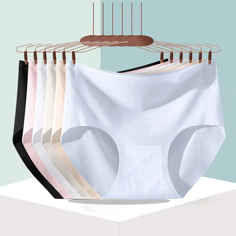 4PCS/Set Women's Ice Silk Seamless Panties Ultra Thin Briefs Breathable Underwear Female High Waist Intimates Lingerie Plus Size