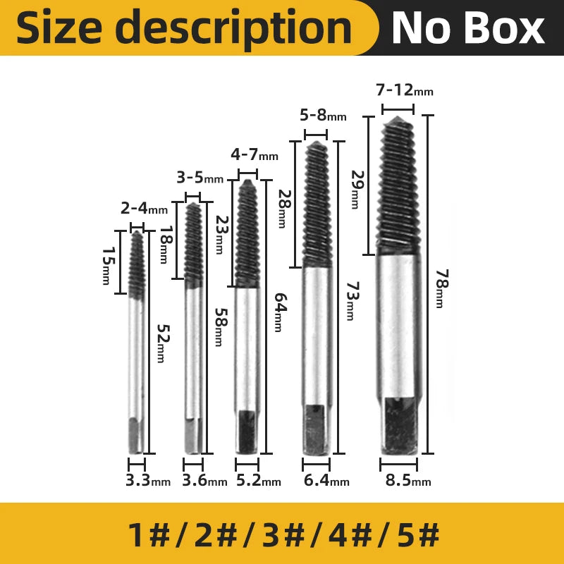 5-teiliges Schraubenausdreher-Zentrierbohrer-Set zum Entfernen gebrochener Schrauben, Zentrierbohrer-Set aus Kohlenstoffstahl, Werkzeuge zum Entfernen beschädigter Schrauben, Führungsset