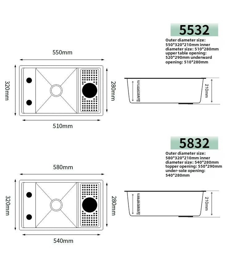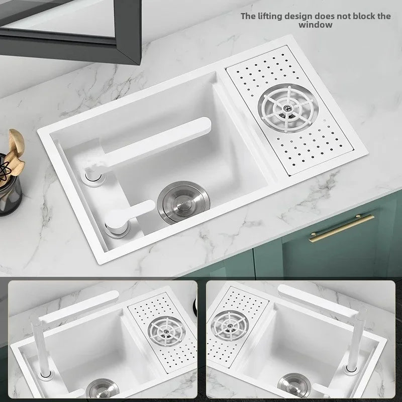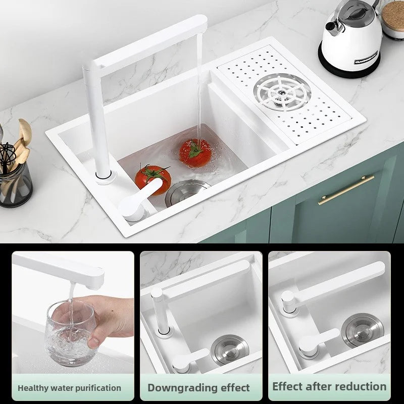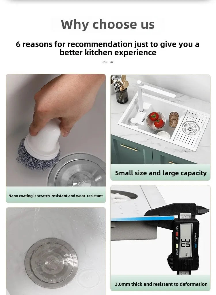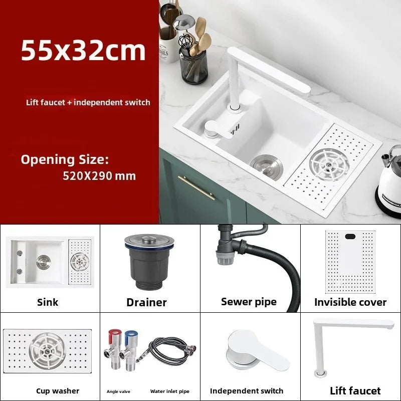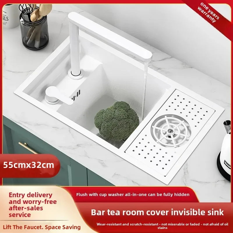 55 cm x 32 cm weißes, verstecktes Küchenspülbecken-Set, zusammenklappbares Wasserhahn-Abflussrohr, einklappbares Unterbauwaschbecken, kleines Waschbecken aus Edelstahl
