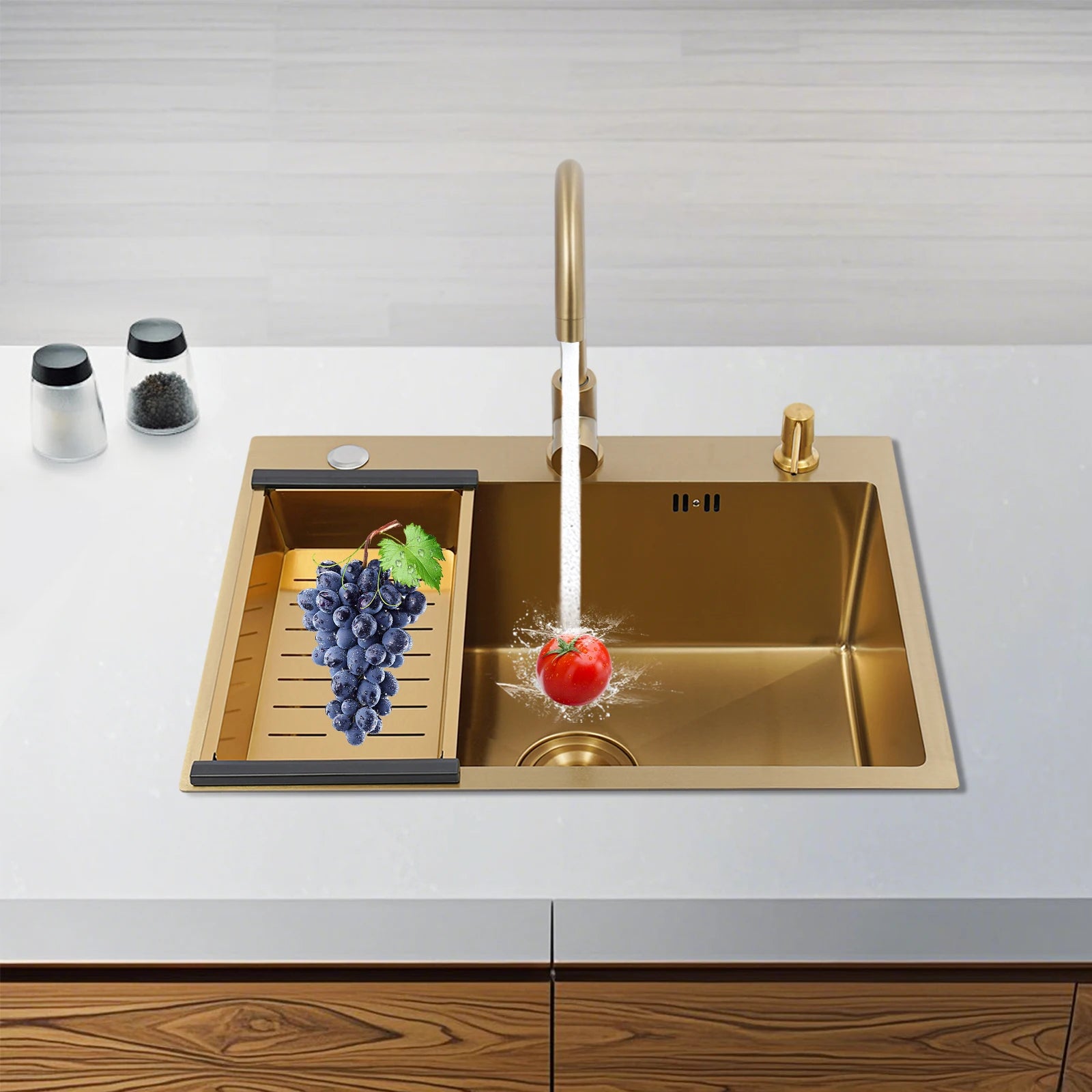 60 x 45 Zoll Edelstahl-Küchenspüle ohne Logo, rechteckige Spüle mit Abtropfkorb für Toiletten, Badezimmer, Waschräume