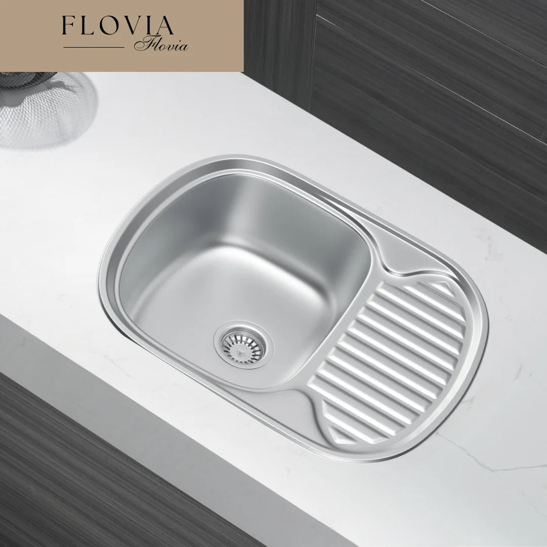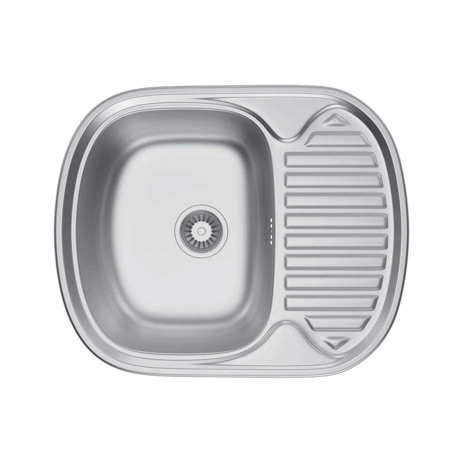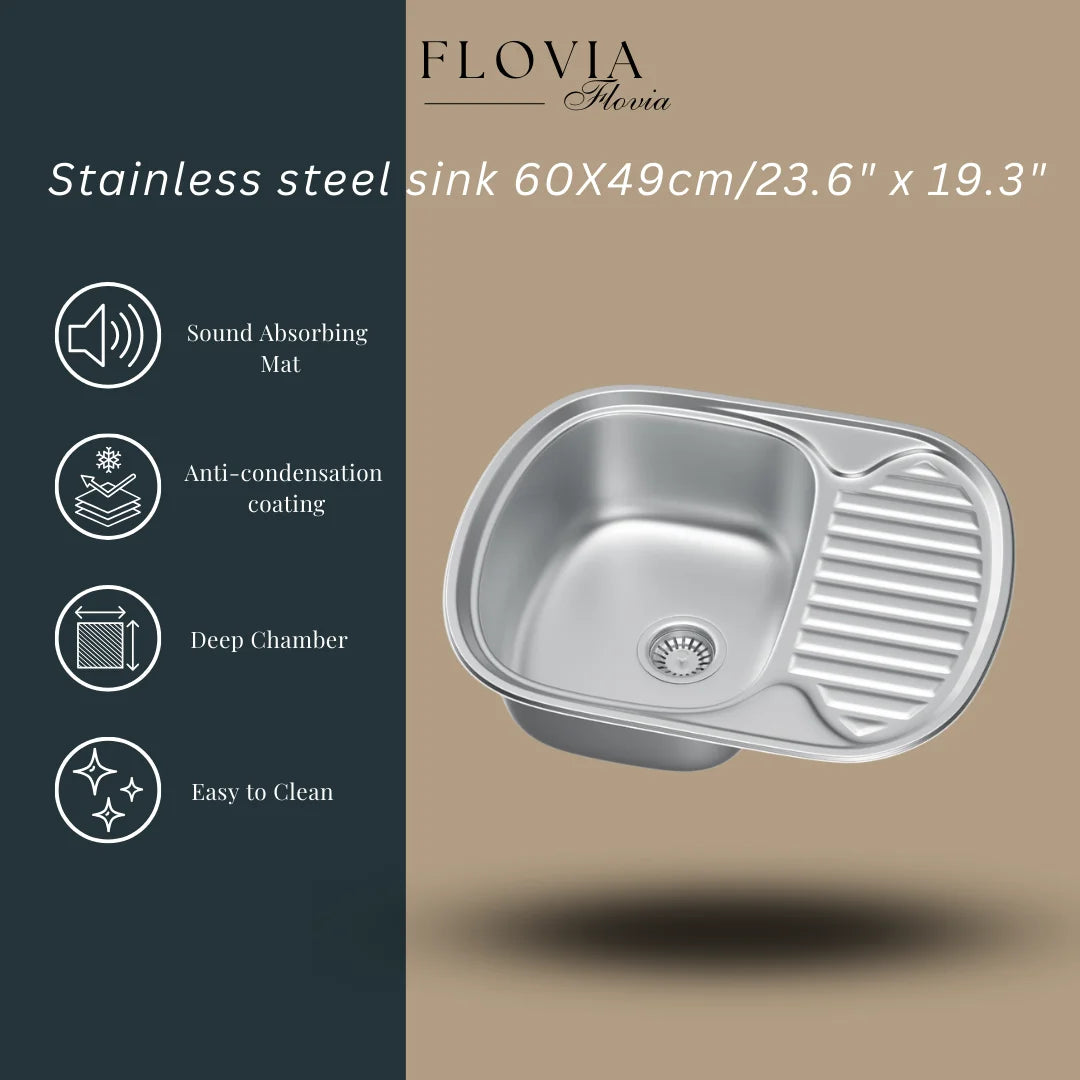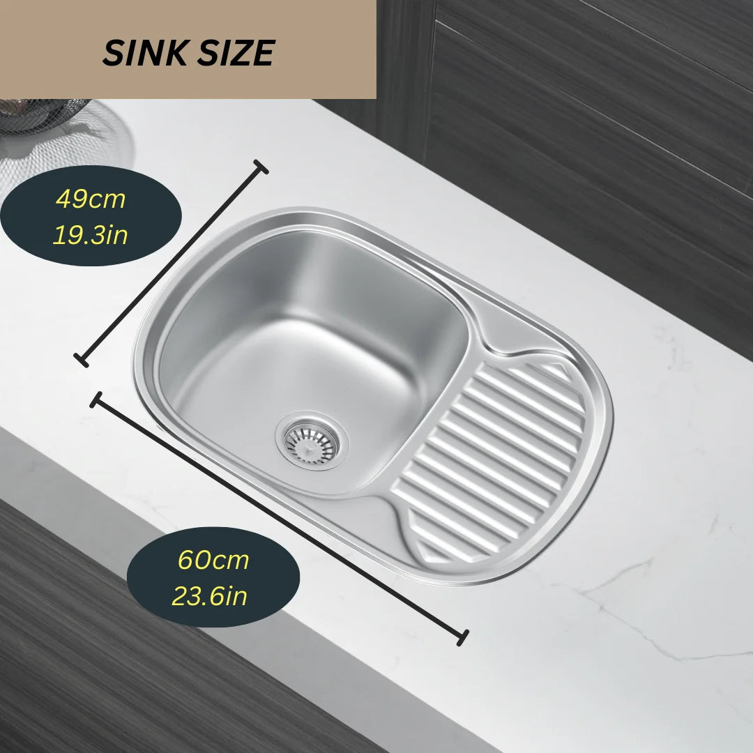 60 x 49 cm Ovales Spülbecken aus Edelstahl mit Abtropffläche – Einbauspüle, reversibel, modernes Design mit einem Becken