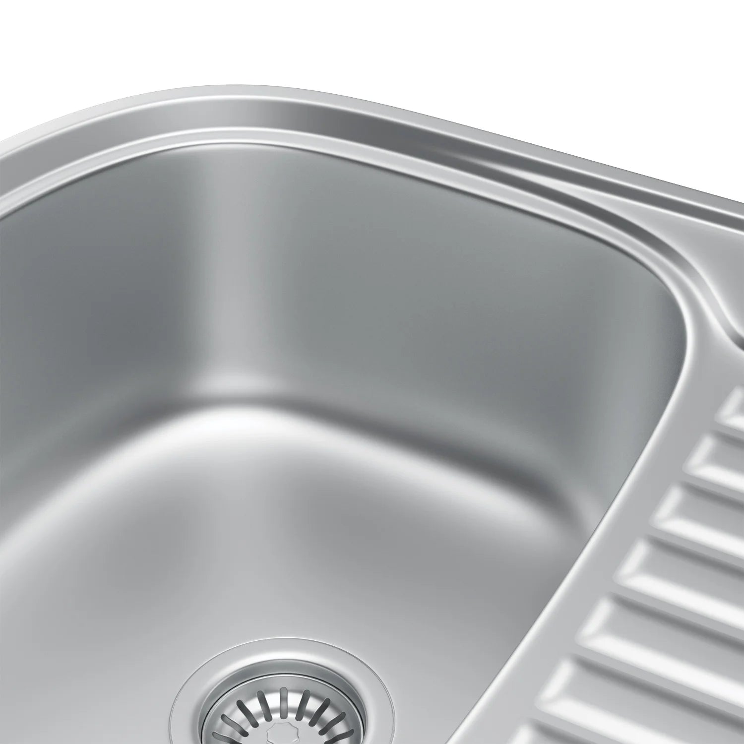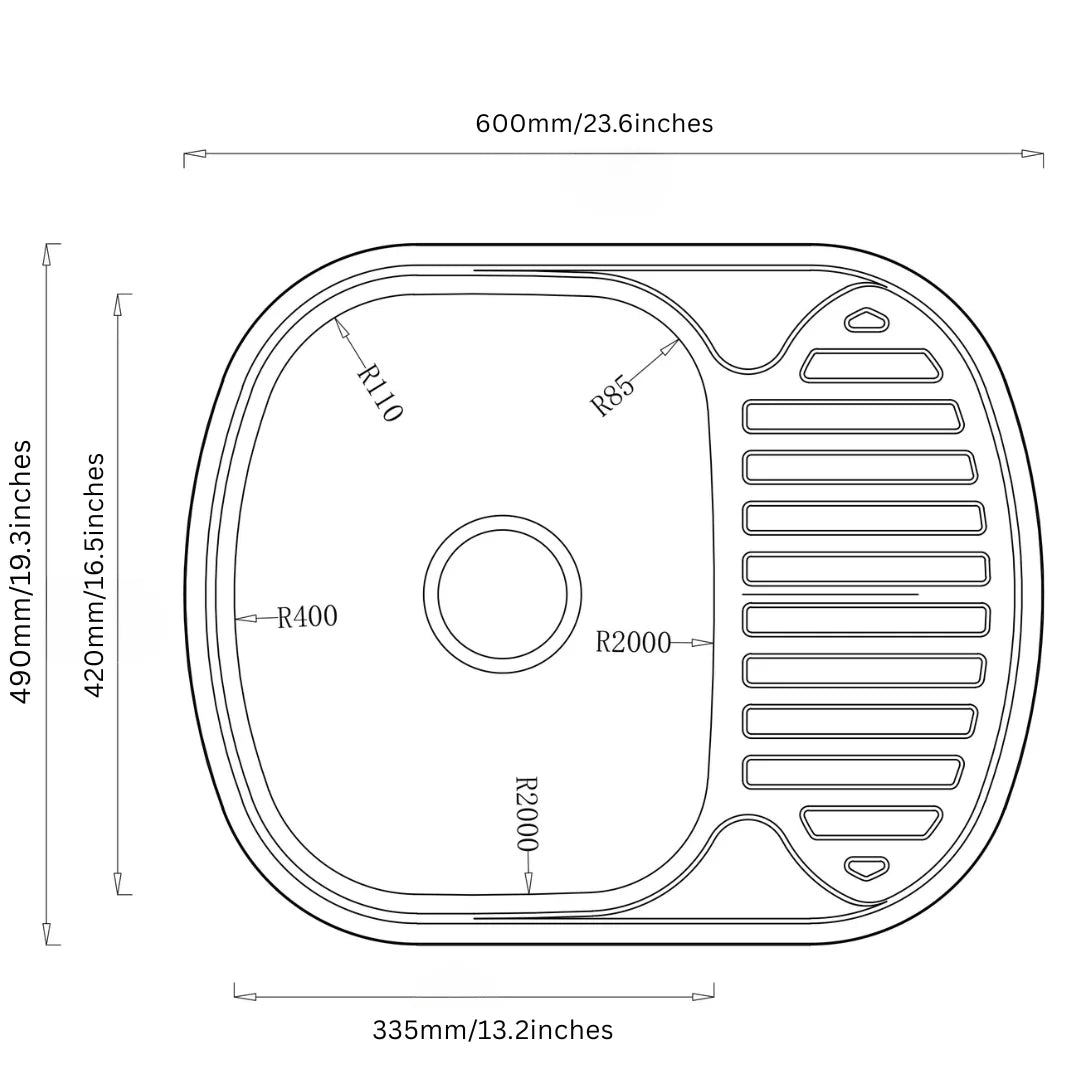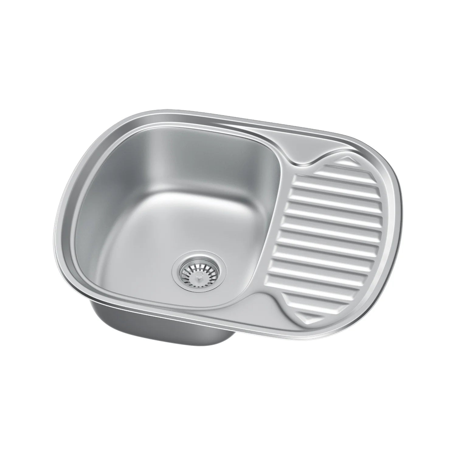 60 x 49 cm Ovales Spülbecken aus Edelstahl mit Abtropffläche – Einbauspüle, reversibel, modernes Design mit einem Becken