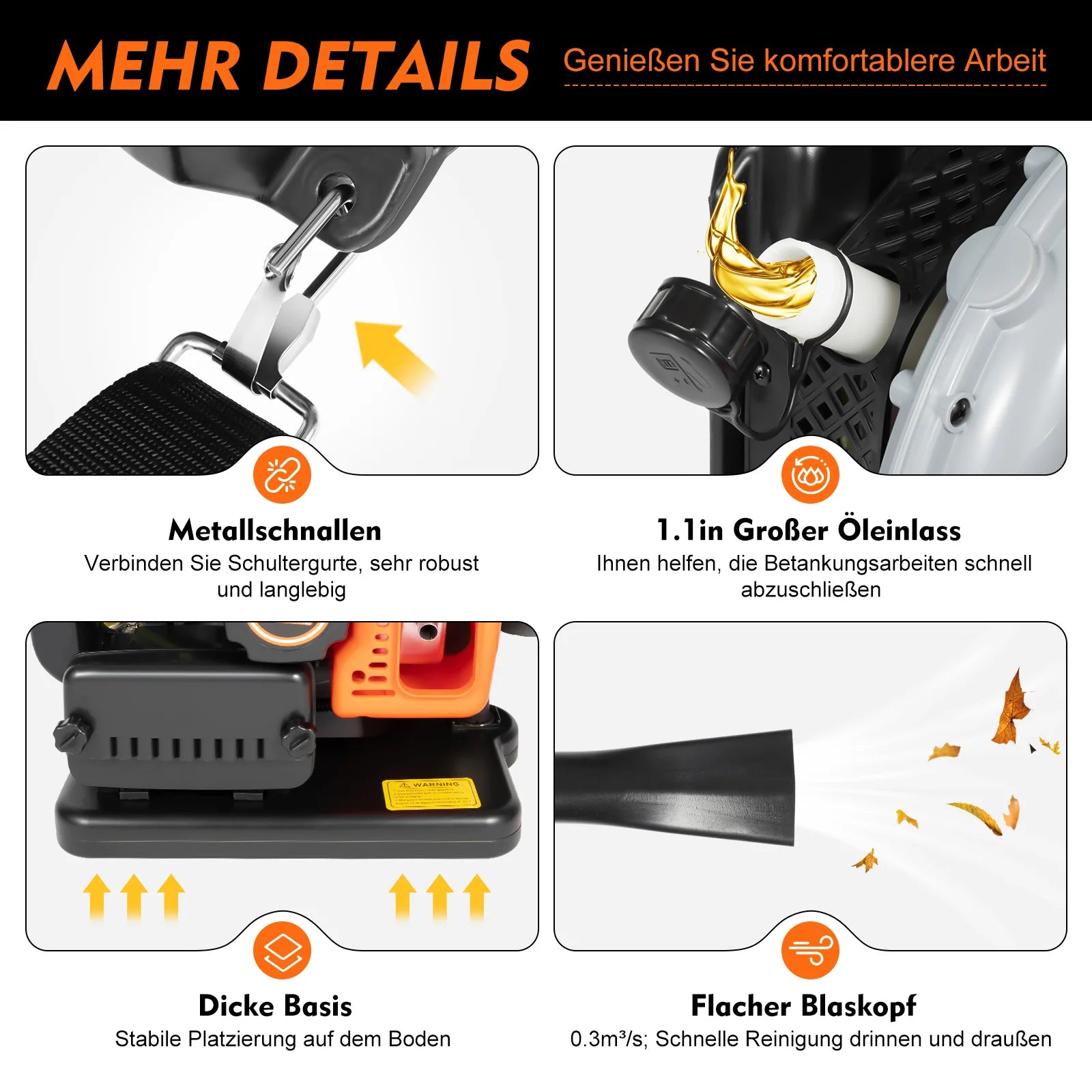 65 CC 2-Takt-Laubbläser mit Gasbetriebenem Rucksack, kommerzielles Rasengrasgebläse für Gras