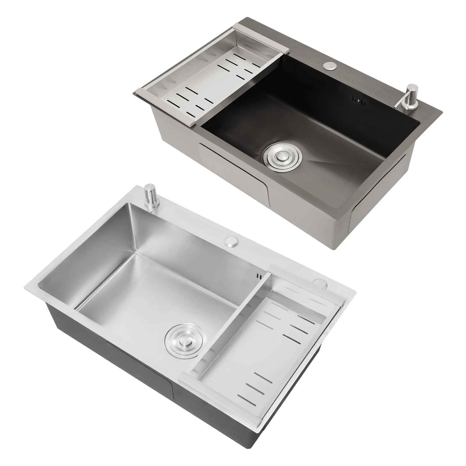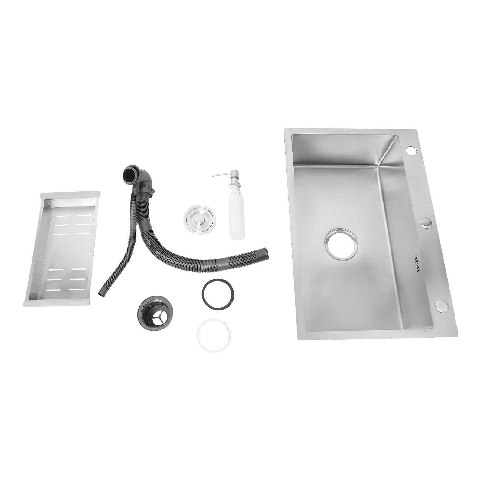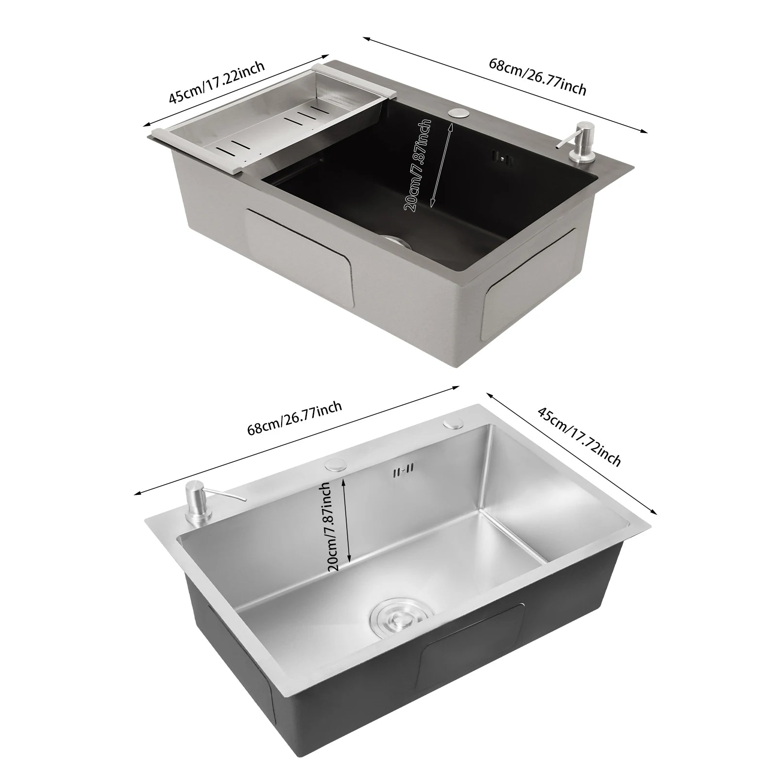 68 x 45 cm großes Waschbecken mit V-förmigem Abtropfkorb und Seifenspender, Anti-Überlauf-Küchenspüle, Edelstahlspüle