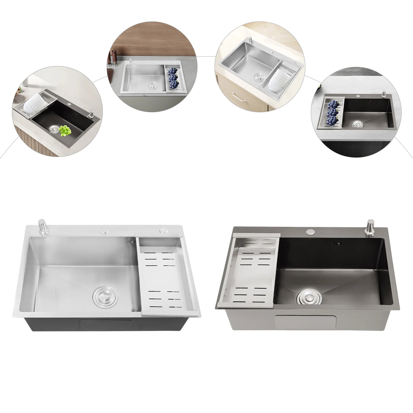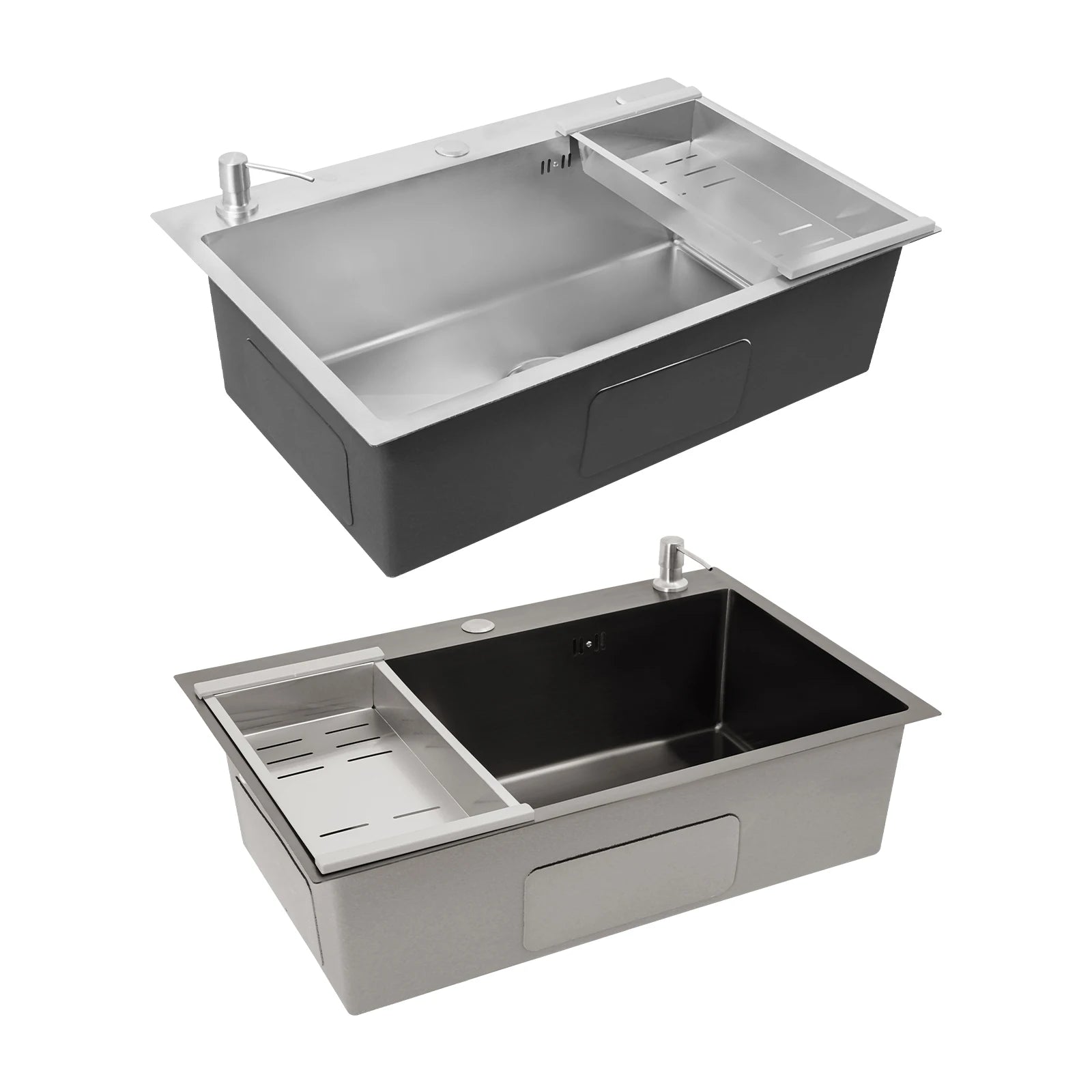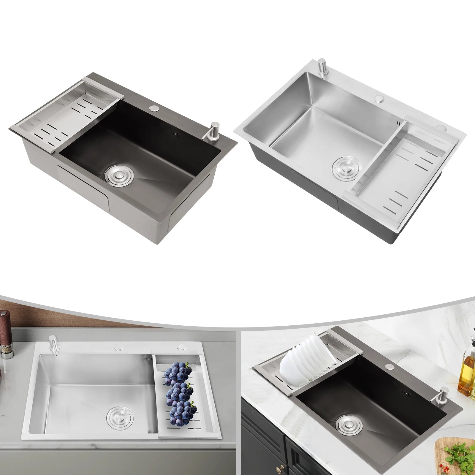 68 x 45 cm großes Waschbecken mit V-förmigem Abtropfkorb und Seifenspender, Anti-Überlauf-Küchenspüle, Edelstahlspüle