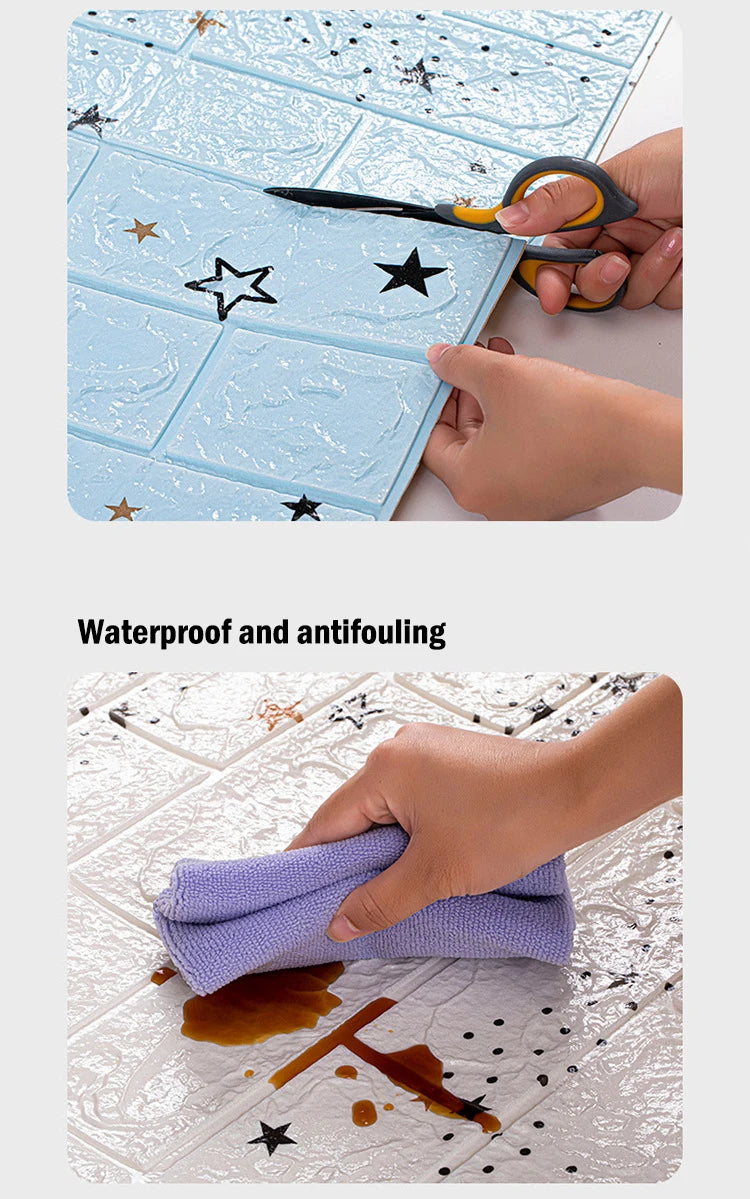 70cmx1m 3D Wall Sticker Faux Brick Bedroom Home Decor Waterproof Self Adhesive Wallpaper Living Room TV Background Decoration