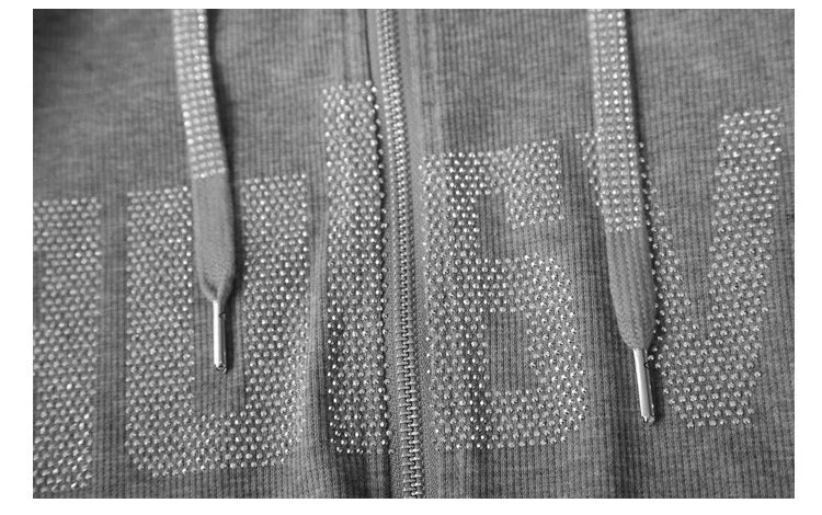 #7937Black Grey Women Hoodies Sweatshirt Tops Pullovers Diamonds Letters Slim Streetwear Short Hoodies Woman Zipper Korean Style